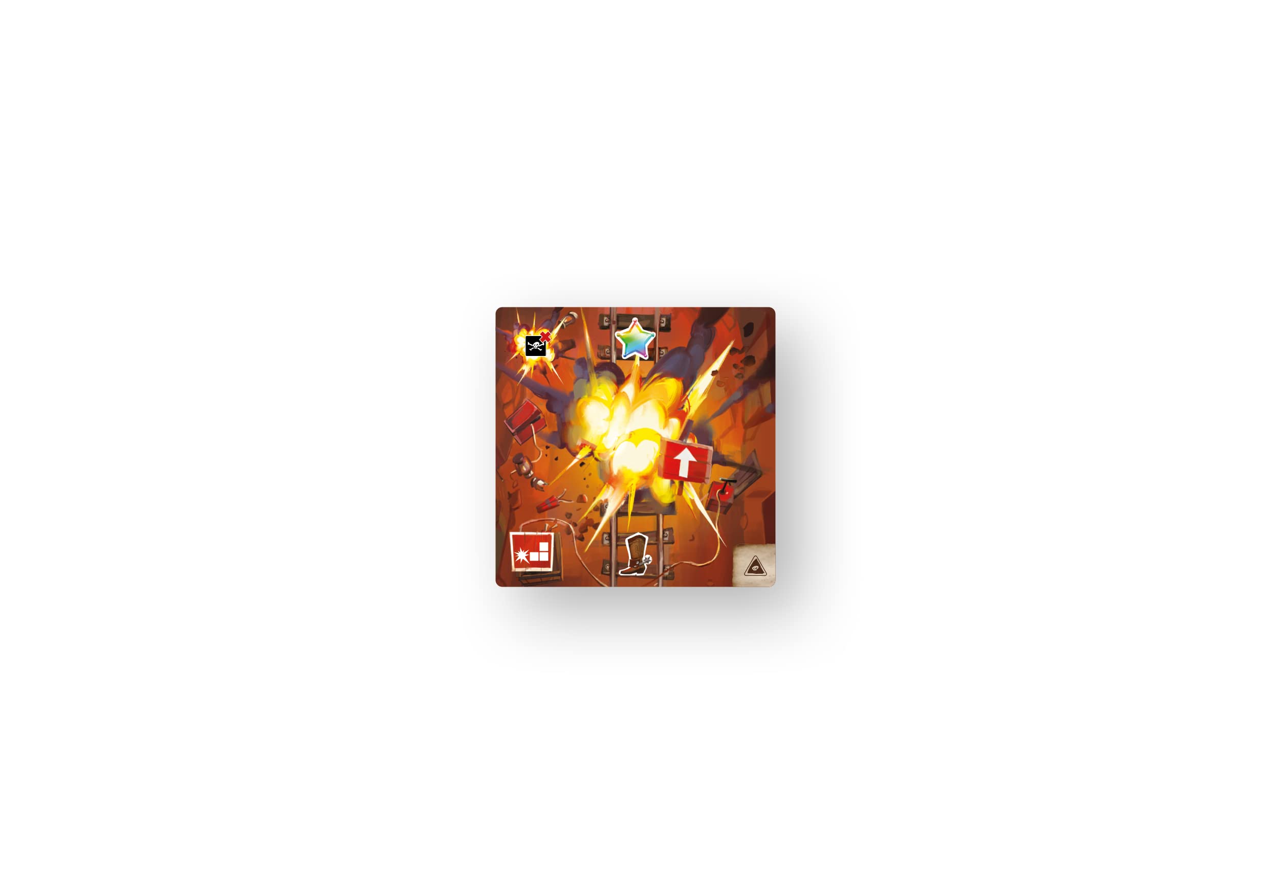 Oh no, the mine is collapsing! Hurry, get in the wagon and head towards the exit! Infernal Wagon is an intensely fun cooperative game in which players must work together to create a path to the exit before the time runs out! But be careful: each card played has a high chance of triggering devastating effects! A game of Infernal Wagon plays in 7 minutes at most, until one of the end-game conditions is met. In this cooperative game, all players win or lose together. At the beginning of the game, place the 3 starting cards and the wagon on the last one. There is no turn order: when the time is right, the player with the best card plays and activates its effect. They draw a card and any other player can take a turn (and in the 2-player variant, you can play 2 cards consecutively). Once a card is played, move the wagon onto it. Place the exit card within the 7-minute time span to win the game!*