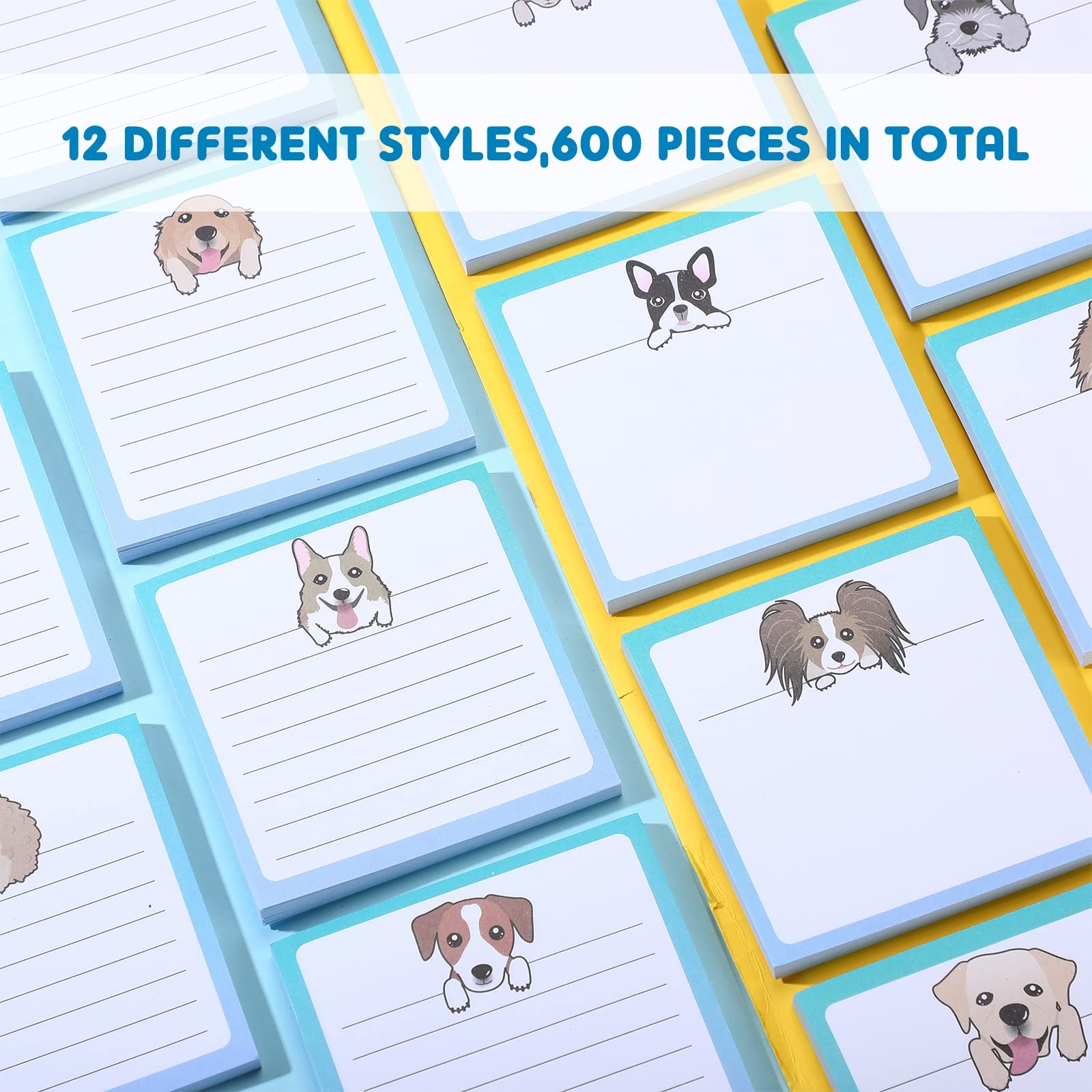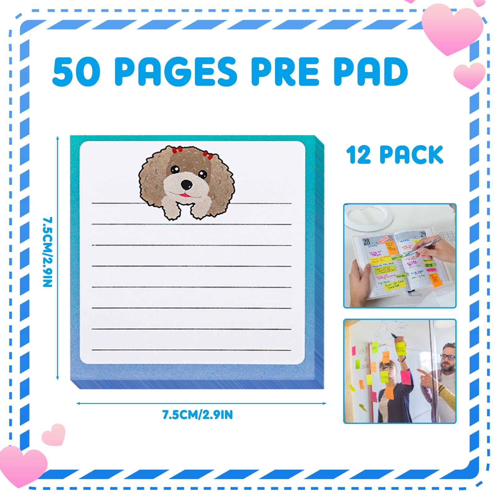 Rich in Quantity: this package provides you with 12 packs of to do list sticky notes of different cute dog styles, each pack has 50 sheets, a total of 600 sheets, sufficient quantity and diverse styles can meet your use and share needs; Each sheet measures 7.5 x 7.5 cm/ 2.9 x 2.9 inches, suitable for writing messages, memos, notes and more