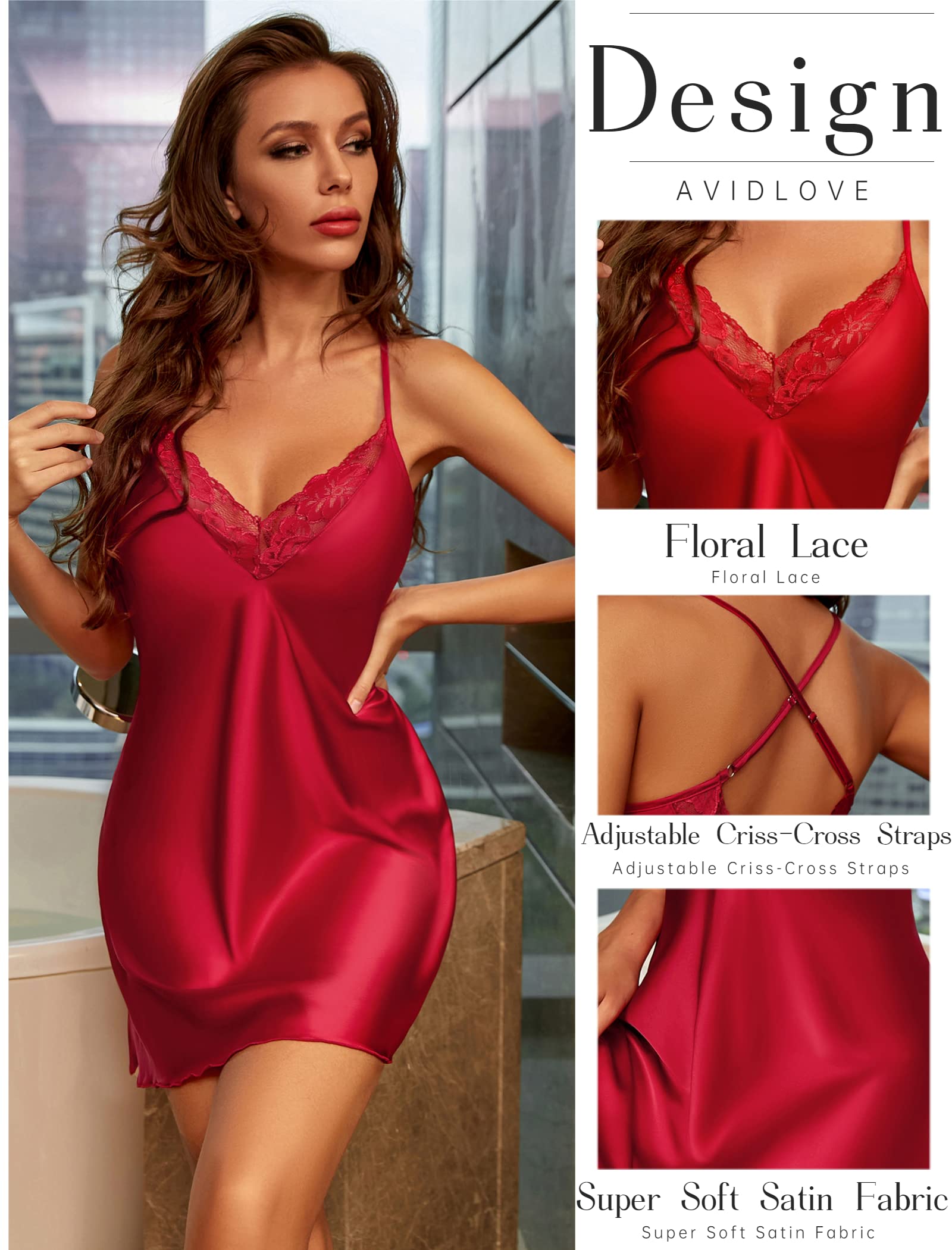 ❤️If you really to impress your partner and have a very romantic moment get this lovely silk nightgown for women 100% recommended!! Avidlove satin nightgown for women features deep V plunge front, adjustable criss-cross straps, floral lace decoration, it inspires sultry flirtation and your true beauty. The cut of this and the slight stretch in the lace makes the fit very forgiving and comfortable. Sexy way to add some spice to your bedroom!