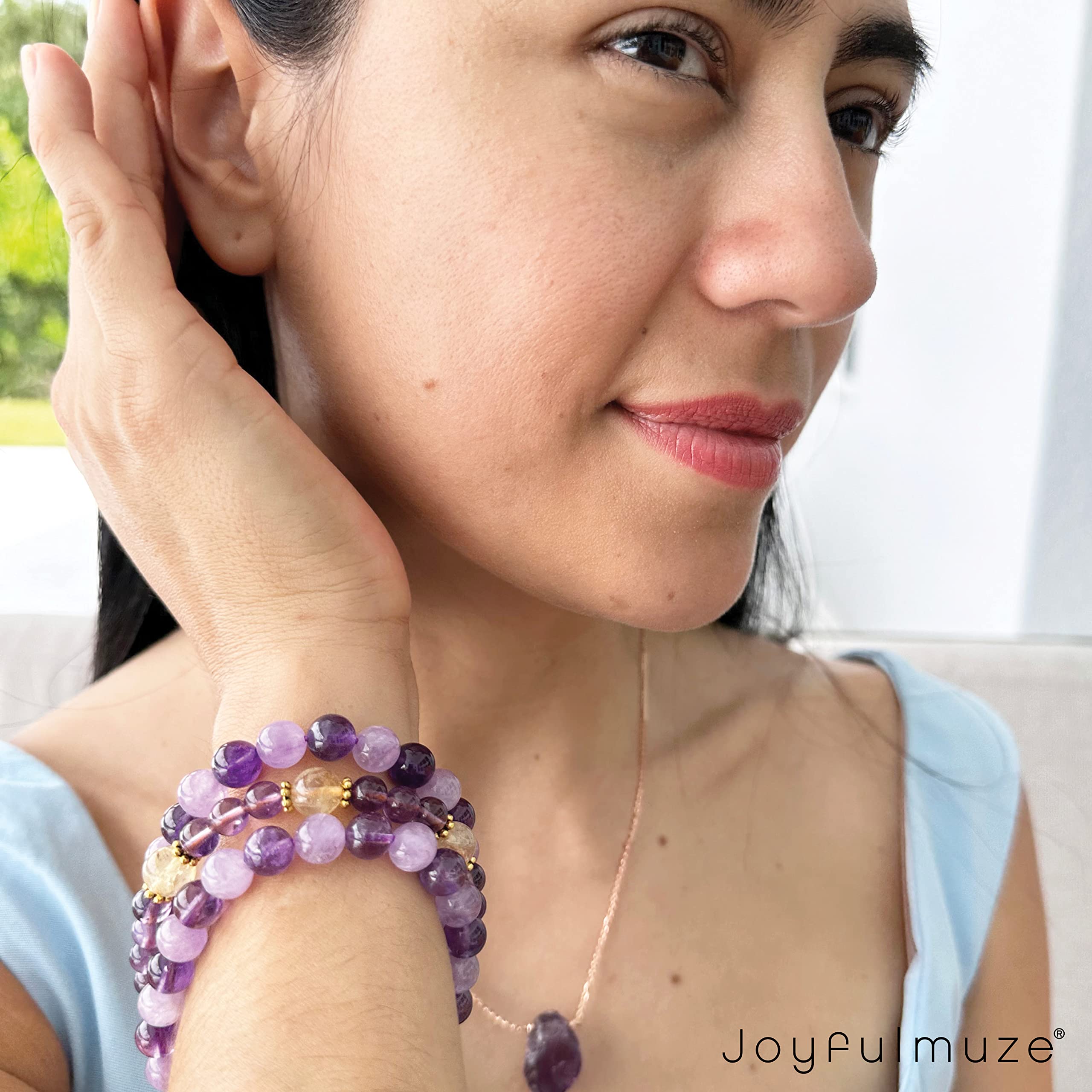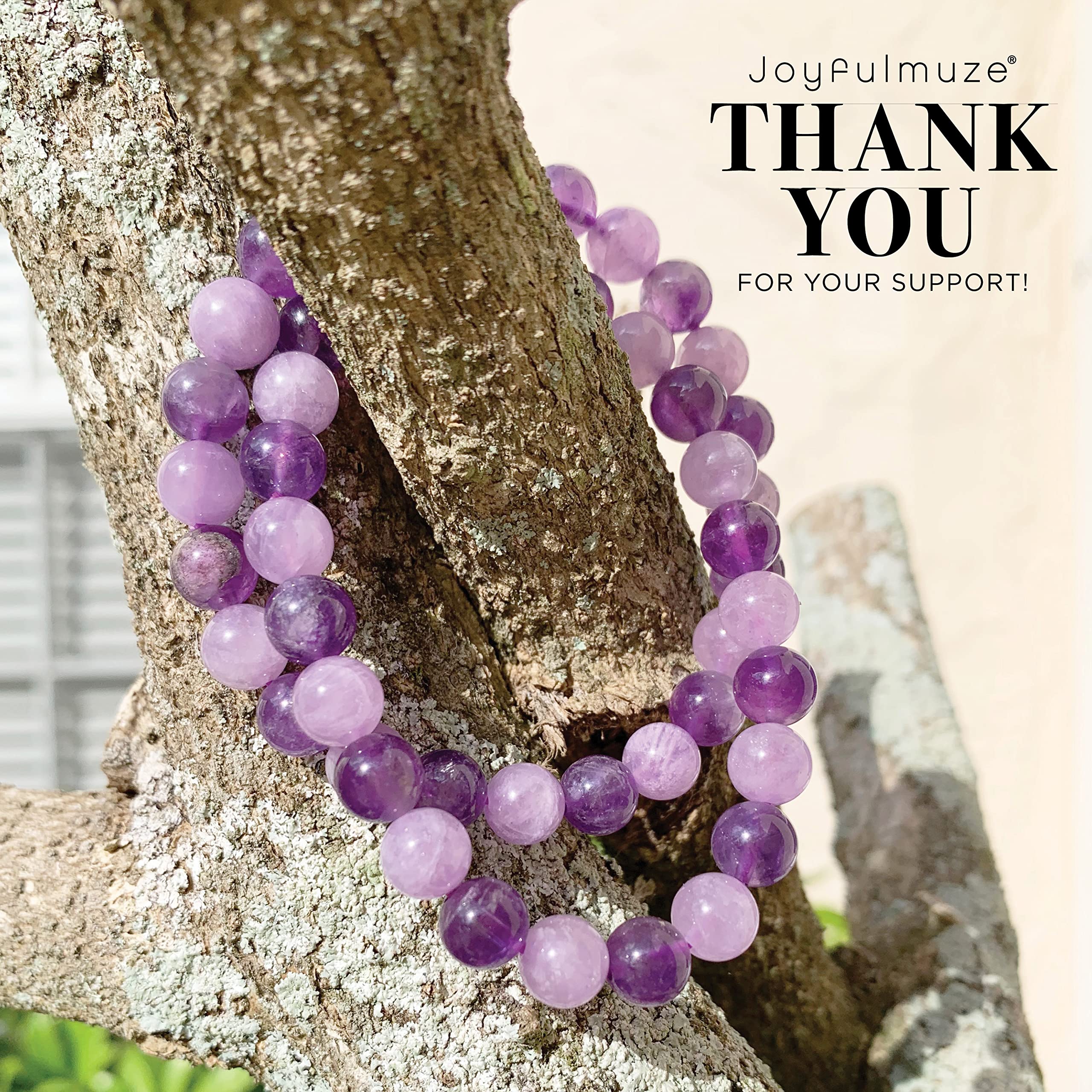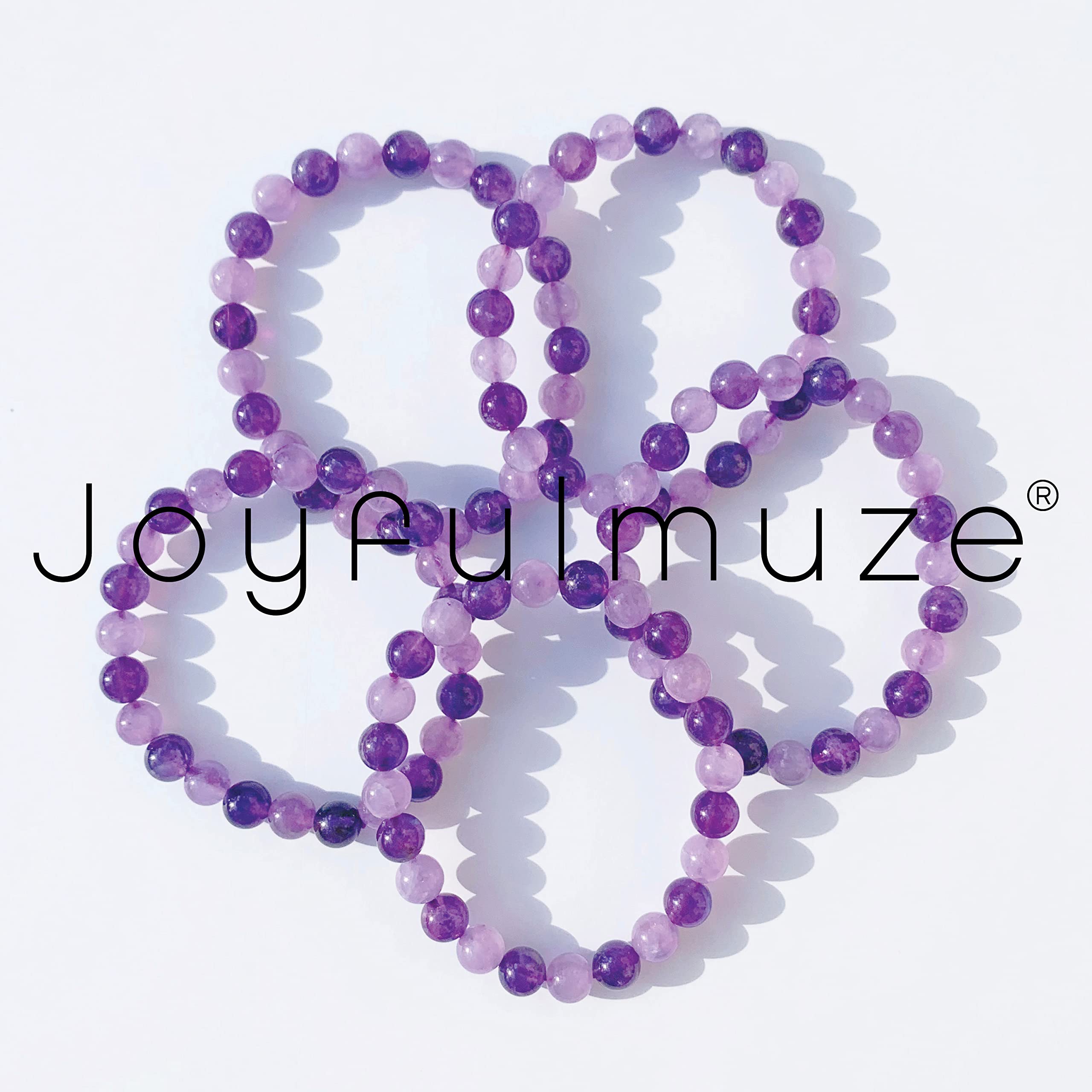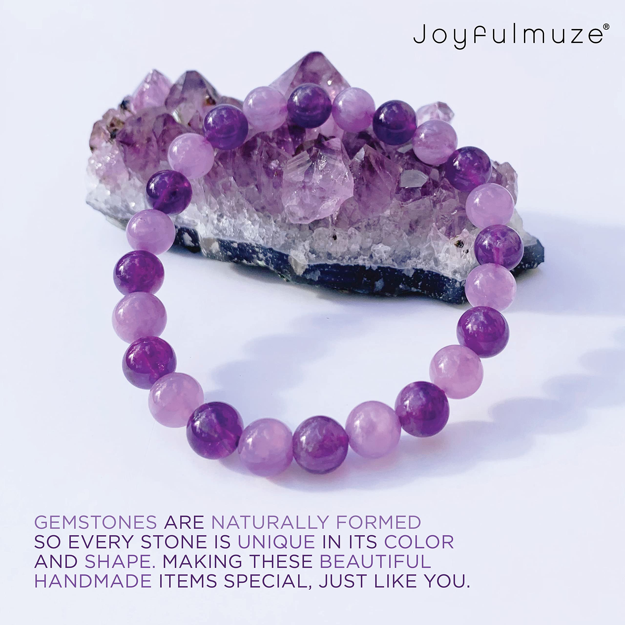 Why Choose Joyfulmuze Jewelry strong> Not only are you supporting a local artist but you are also buying original handmade jewelry. Handmade with love and attention to detail, these natural gemstone stretchy bracelet will flawlessly complement your everyday style. Layer them with my other bracelets or match them with my earring or a necklace. Those semi-precious stones have no dyed, no color enhanced it's natural and may include natural inclusion. Amethyst is extremely beneficial to the mind, calming, relaxing, and recharging from stressful environments. Product Care: Please remove jewelry before bathing. Avoid hot water as it can cause stretching of the bracelet. Amethyst make a wonderful gift for any occasion; Mother's Day, Christmas, Hanukkah, anniversaries, birthday, graduation, wedding, or other holiday gifts. Buy for yourself, friends, girlfriend, sister, mom, wife, aunt, grandmother, daughter, or just as a surprise to remind someone how much you care.