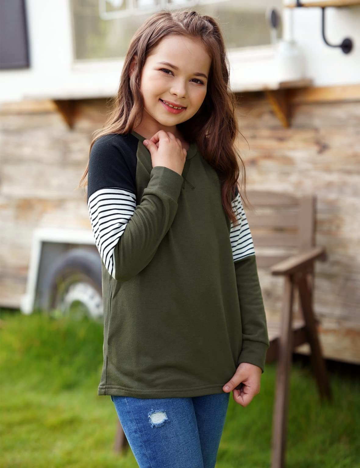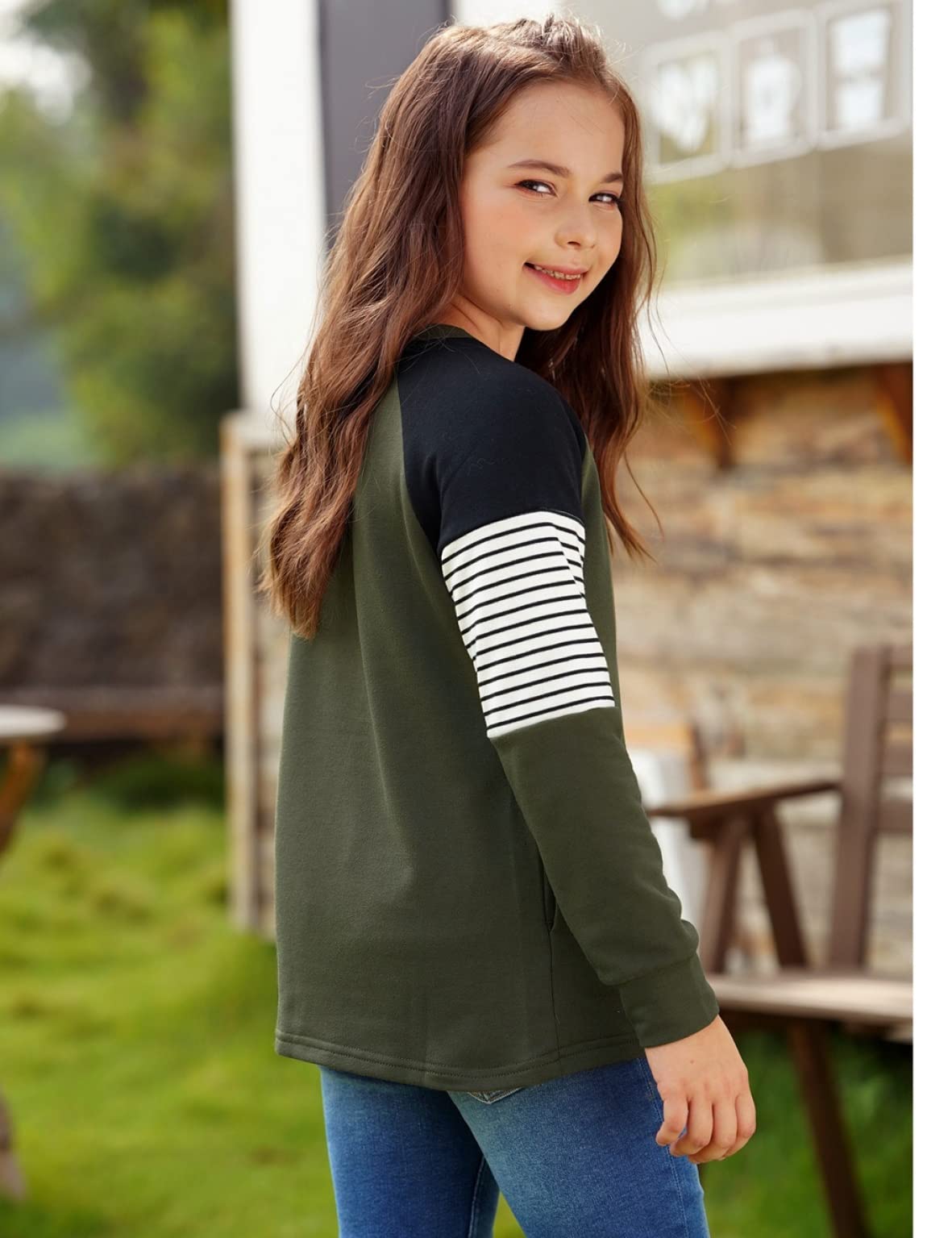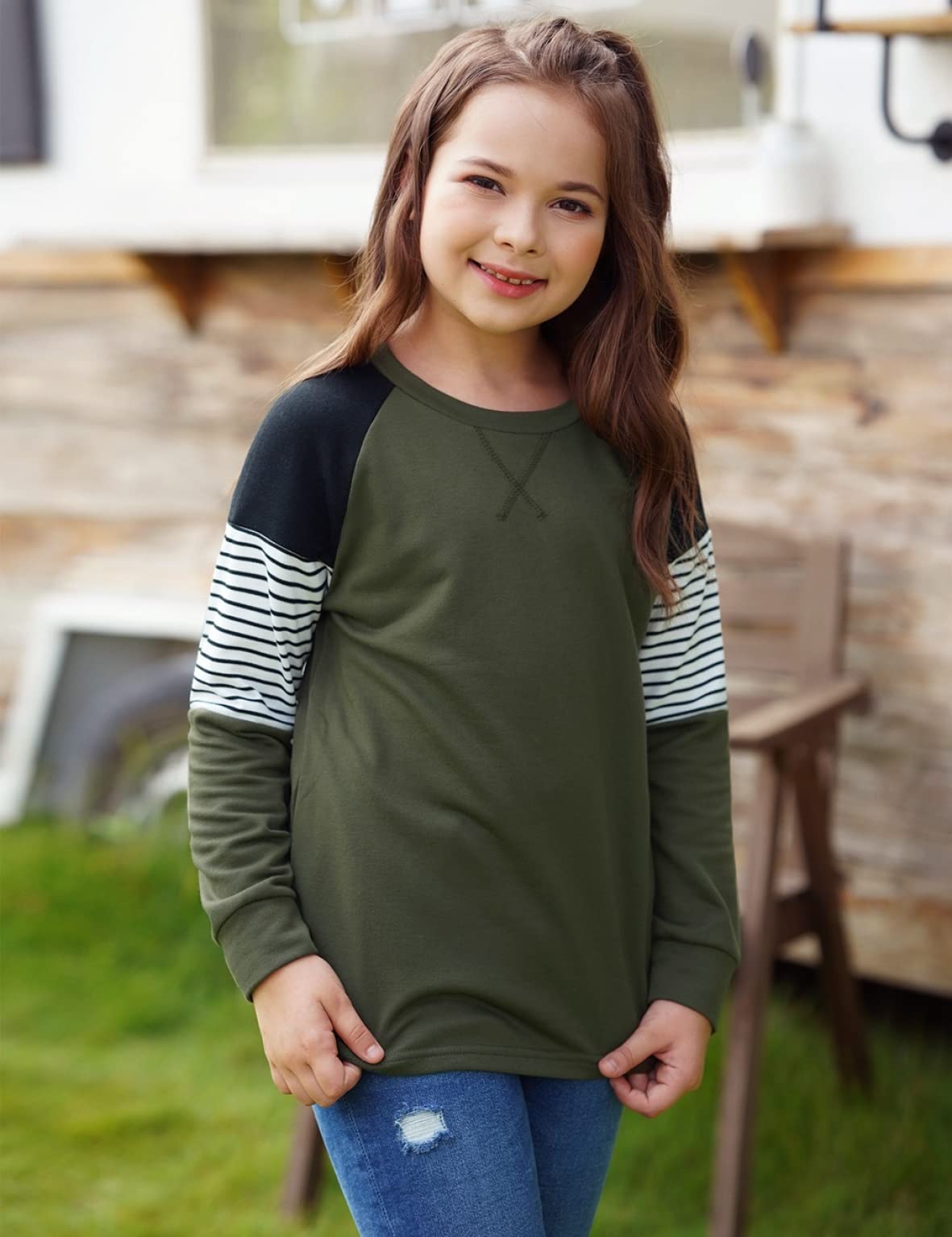 ♥ [Features]:With the striped and colorblock design, the blouse will make your girl look cuter and more fashionable.The girl's blouses with different sizes are suitable for girl of age 4 to 13