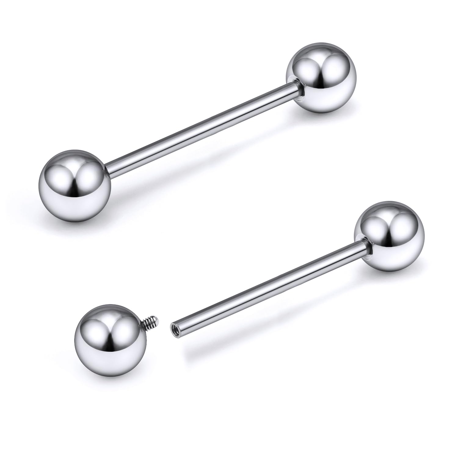 [Style]: 1 pairs Titanium Internally Threaded Straight Barbells Nipple Tongue Rings Piercing Jewelry.