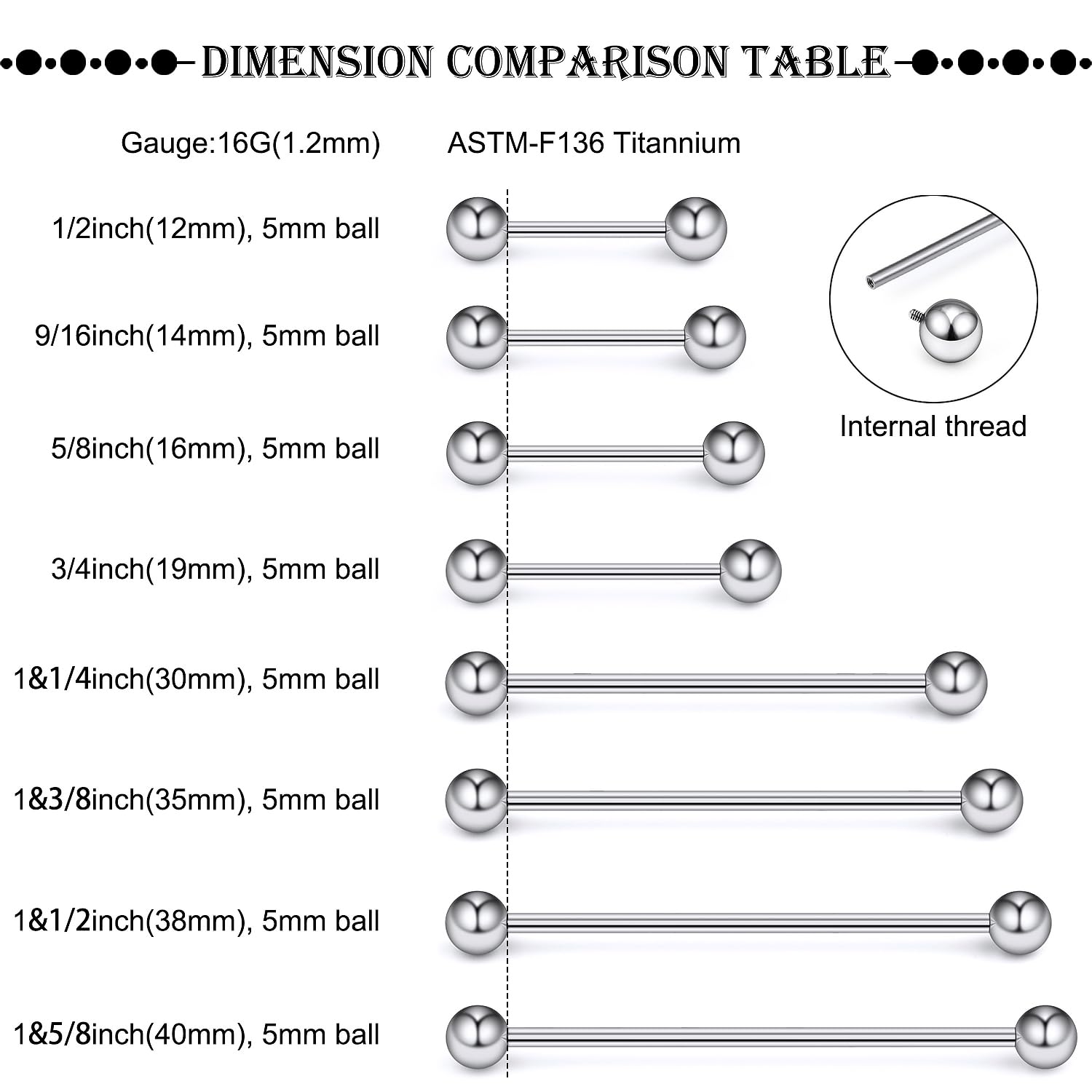 [Size]: 16 Gauge (1.2MM), Length:19MM, Ball size: 5MM.