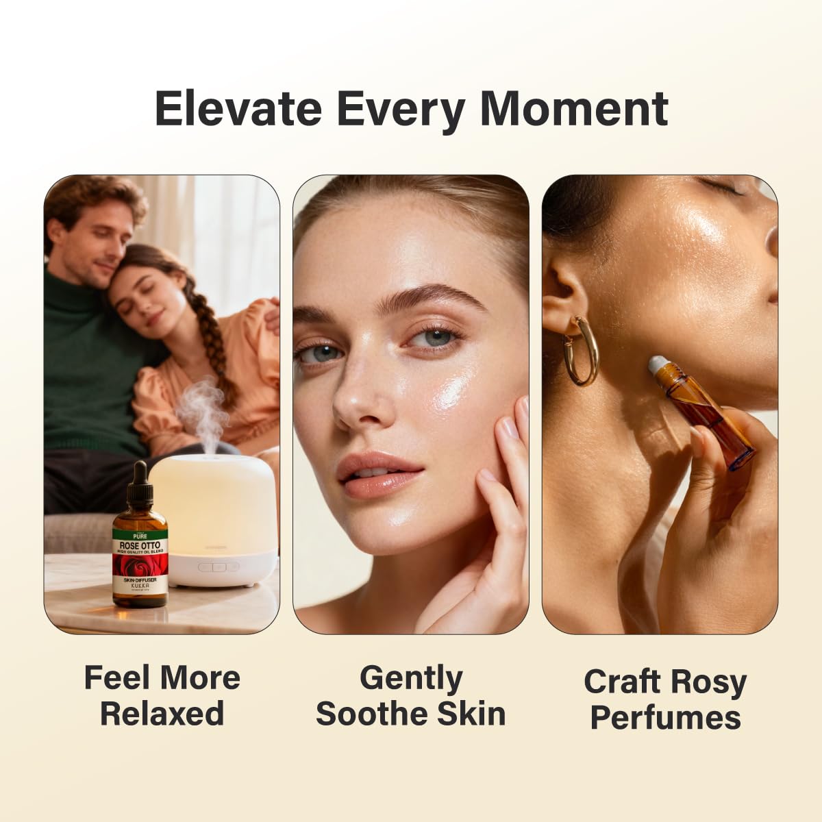 Serene moments that soothe. Imagine a peaceful retreat at home, using rose otto essential oil in your diffuser. It envelops your space in a calming, authentic rose aroma that eases and enhances tranquility, even in high-pressure settings.