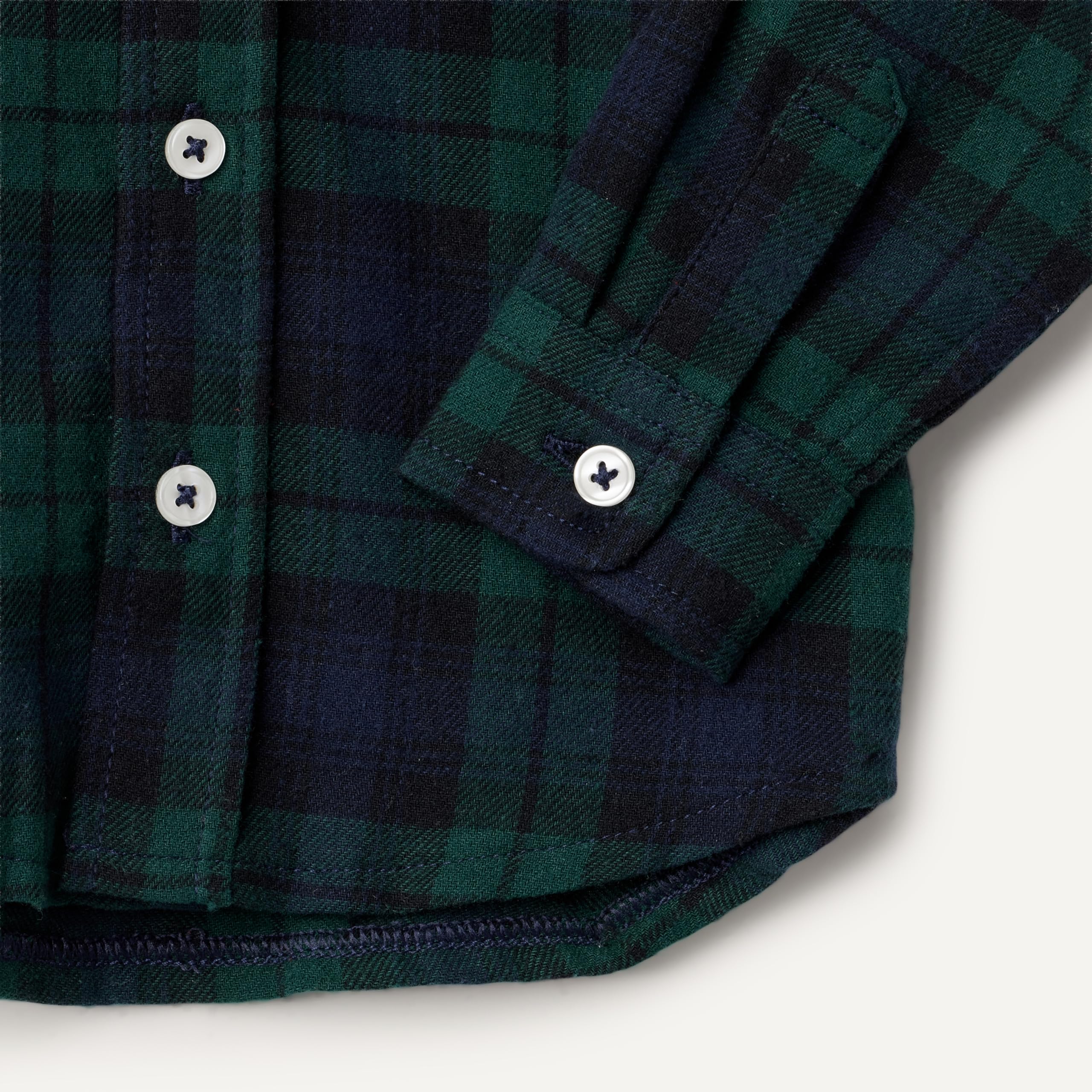 DETAILS: A classic flannel shirt featuring a button-front placket, collar, buttoned cuffs, and a shirttail hem