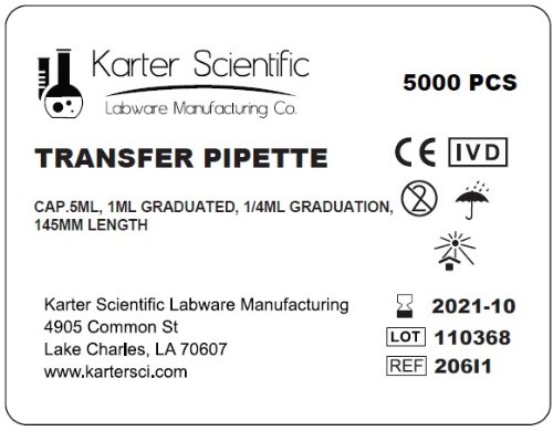 Karter Scientific is a registered trademark in United States of America. To maintain quality control, authorized permission is required in the resale of our products. LDPE dropping pipettes are graduated, and can be easily rinsed and re-used.