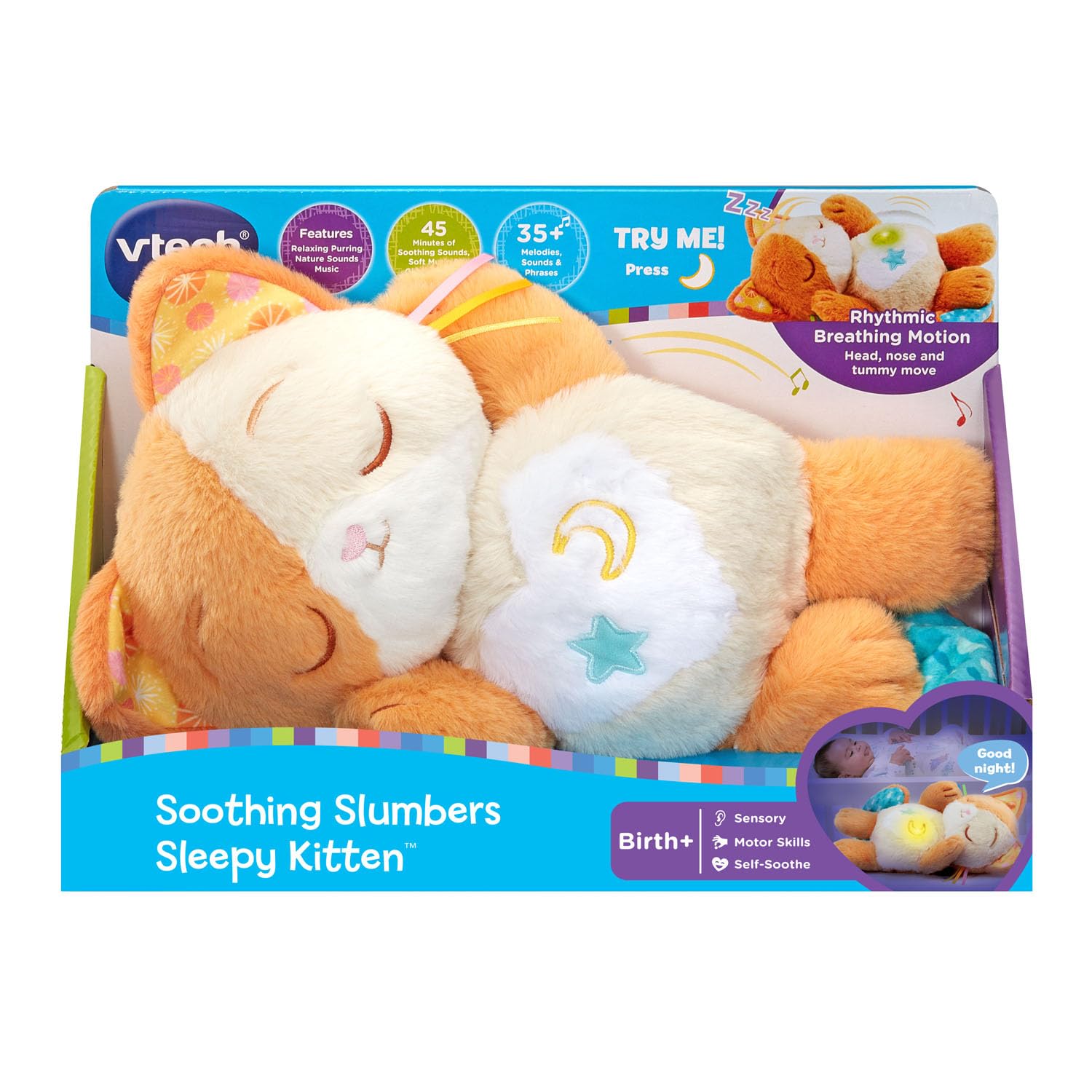 Help little ones self-soothe with this purrfect kitty whose head, nose and tummy move in rhythmic breathing motions