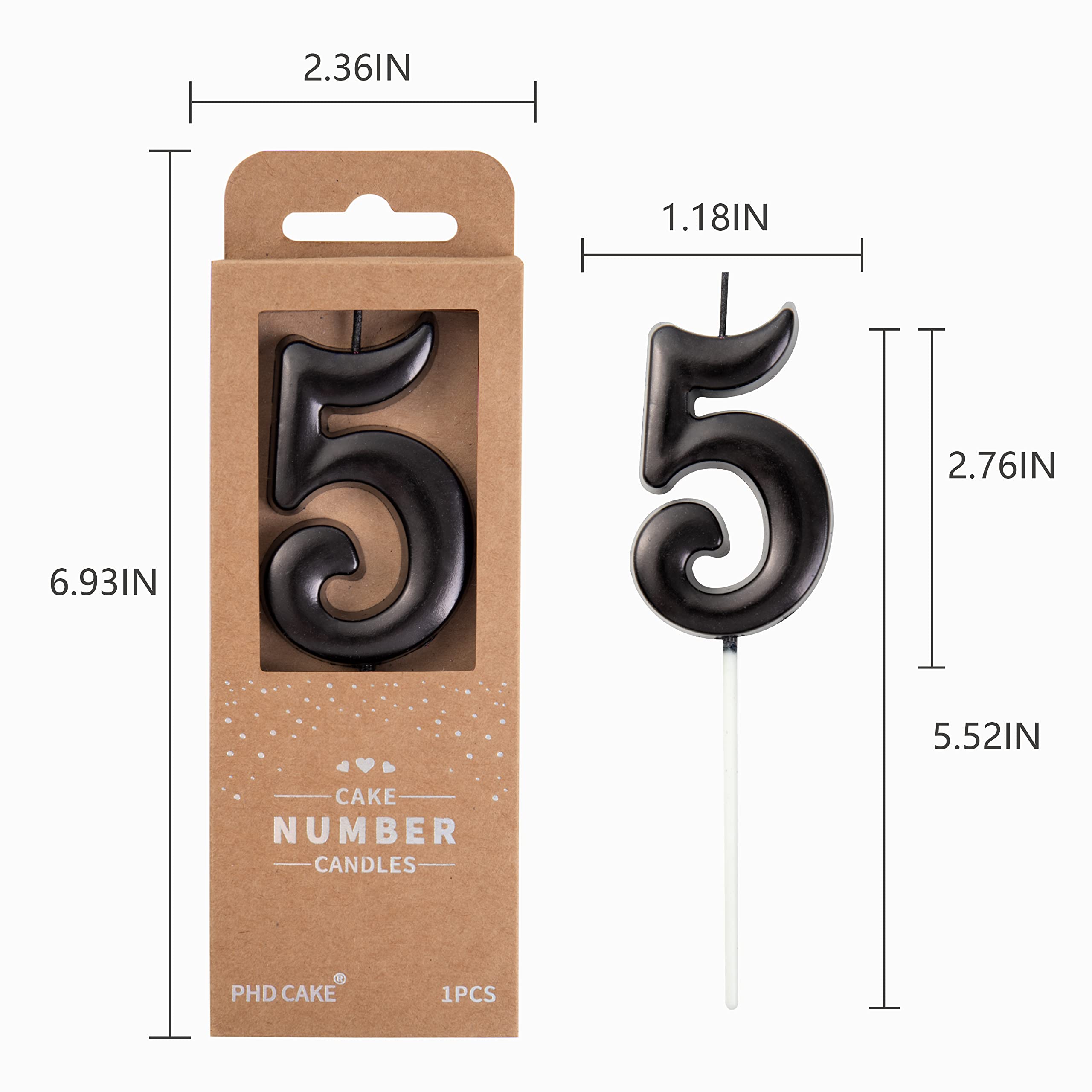 New: 2.76 Inch Large Elegant Black 5 Number Birthday Candle designed to make your cake and birthday a unique and truly inspiring event.