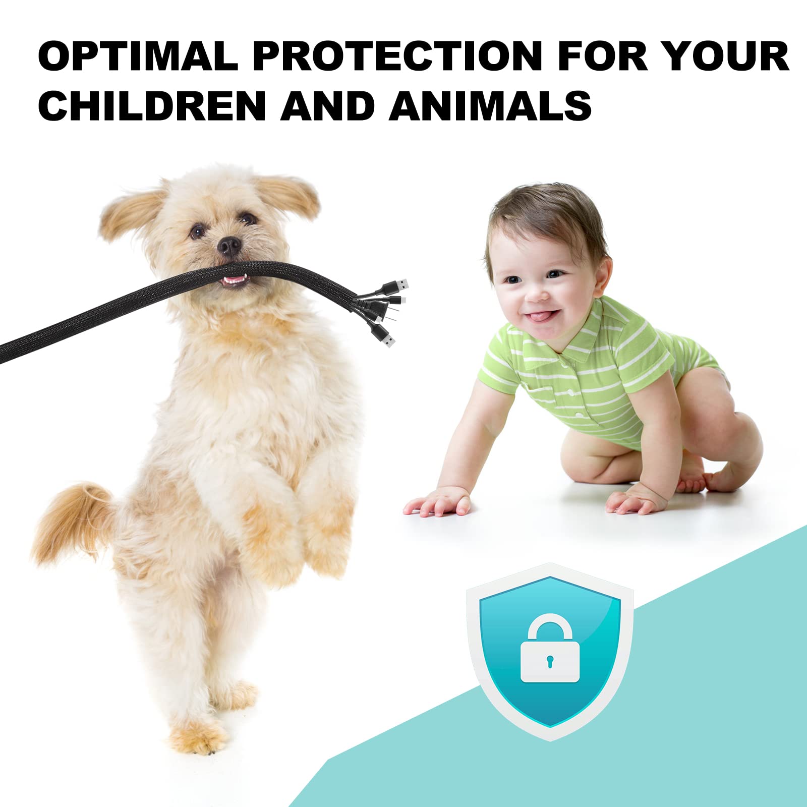 【Safer for Pets and Children】 AGPTEK Cable Sleeve, pets dog cat cord protectors, pet-friendly and non-toxic, safe for pets and children. It protects cable wires, prevents children and pets rabbits, dogs, cats, hamsters, and gerbils from chewing and scratching on them, and makes your home safer and more organized