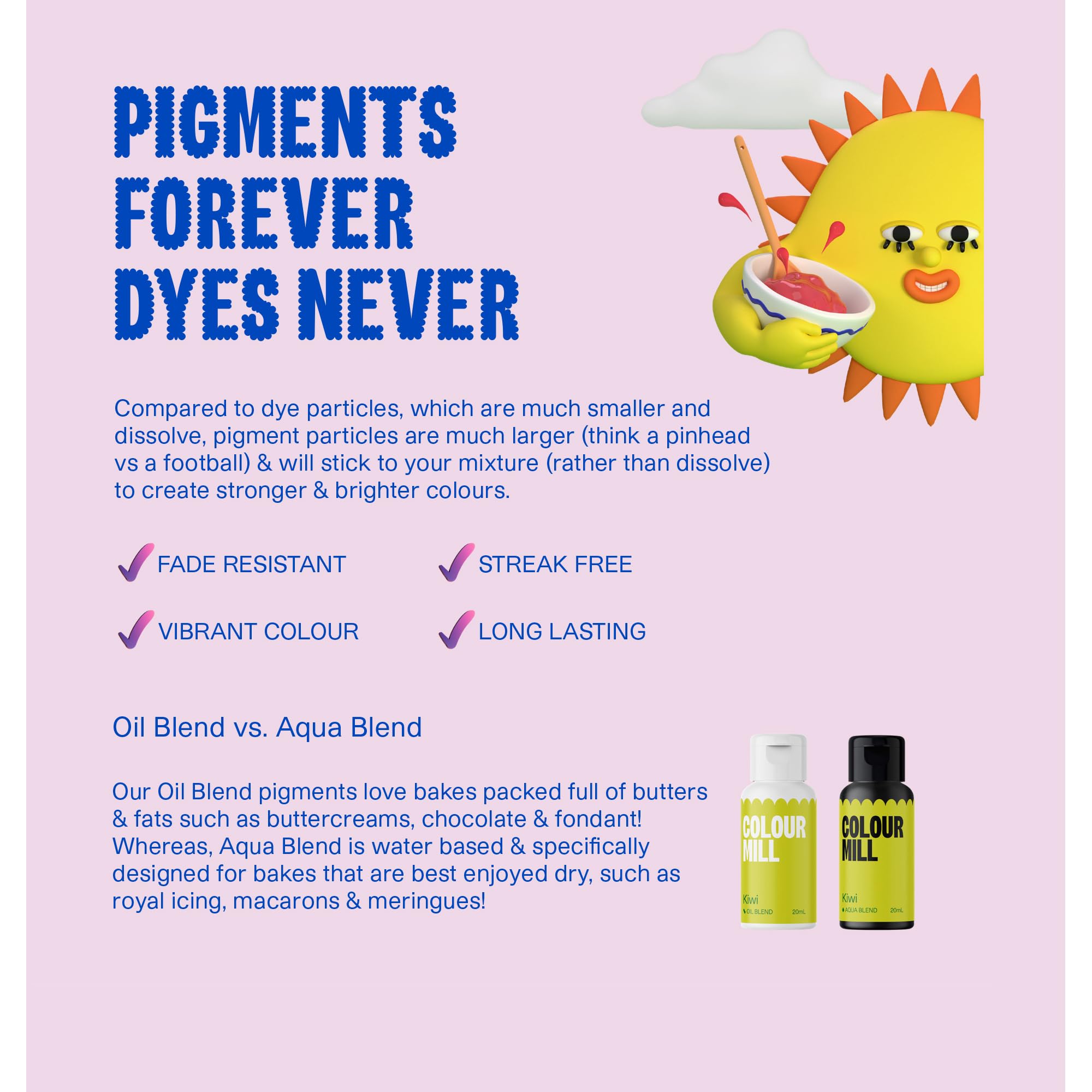 Works with royal icing, macarons, jellies, fondant, meringue and beverages