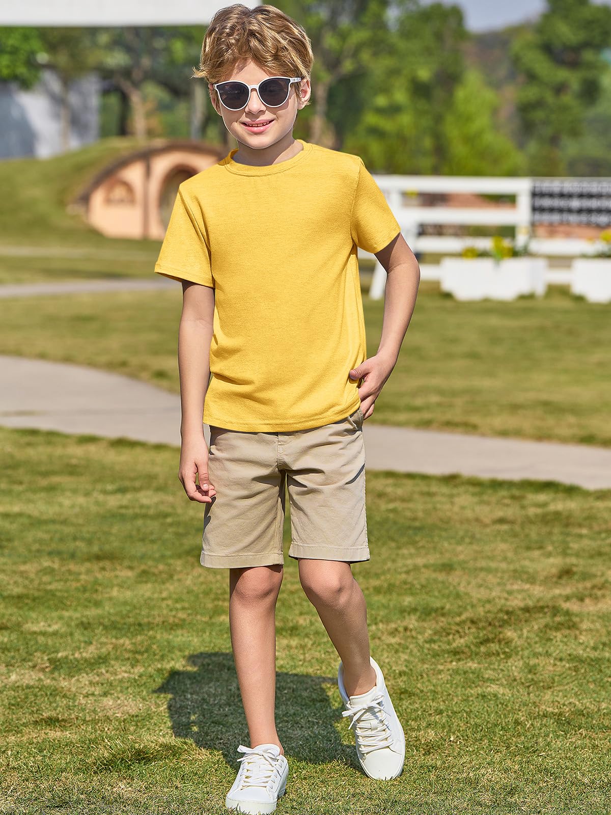 Match: These boys short sleeve T-shirts an be easily paired with shorts, jeans, overalls, sweatpants and sneakers. Or pair it with a cardigan or jacket in spring and fall. Available in a range of solid colors, they offer a clean, versatile look that easily matches any clothes, making them a wardrobe staple for boys