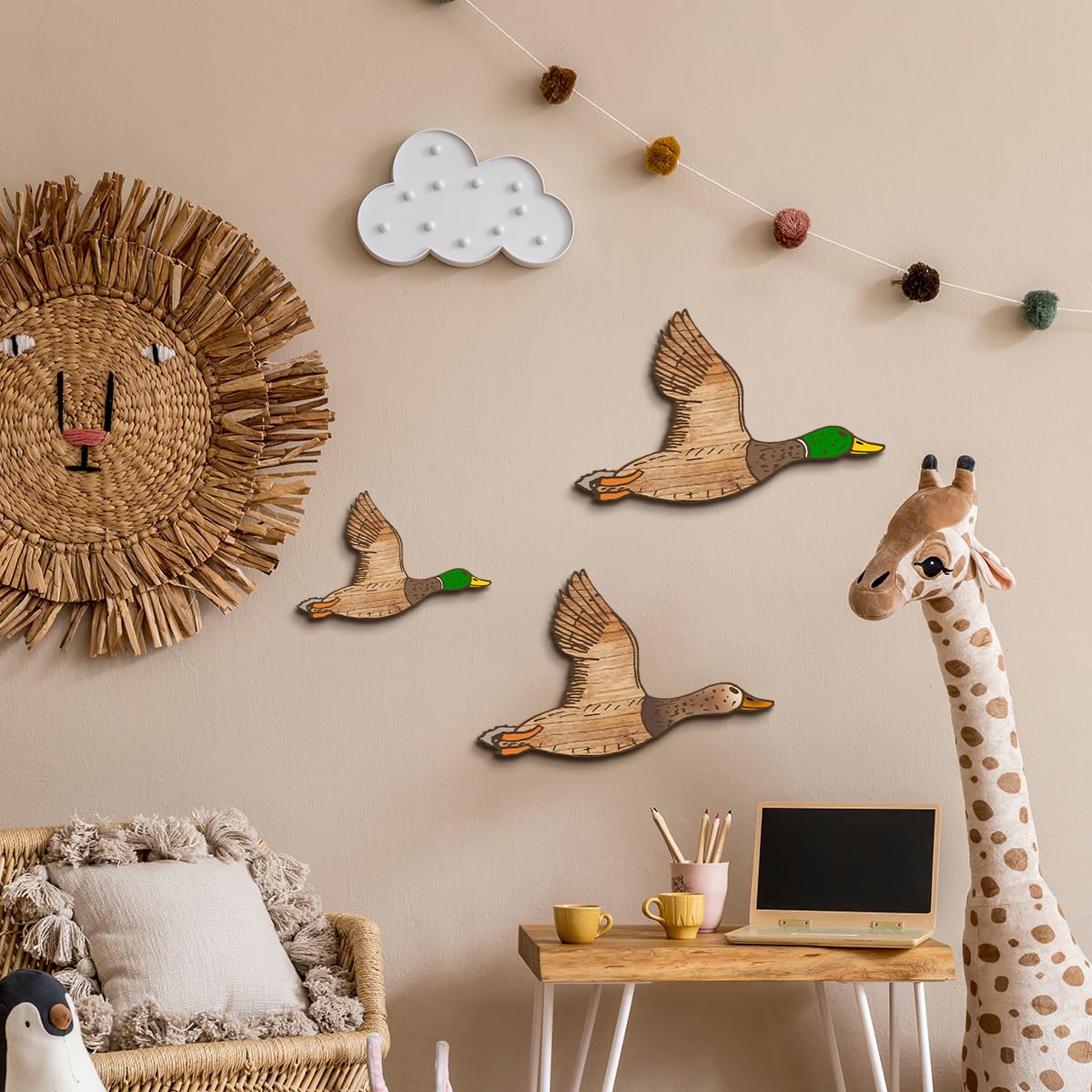 Authentic Retro Design: Our flying ducks wood wall decor capture the essence of the 1950s era. Each piece is meticulously crafted to resemble the graceful flight of these majestic vivid birds. The attention to detail and the use of high-quality wood ensure an authentic retro look.