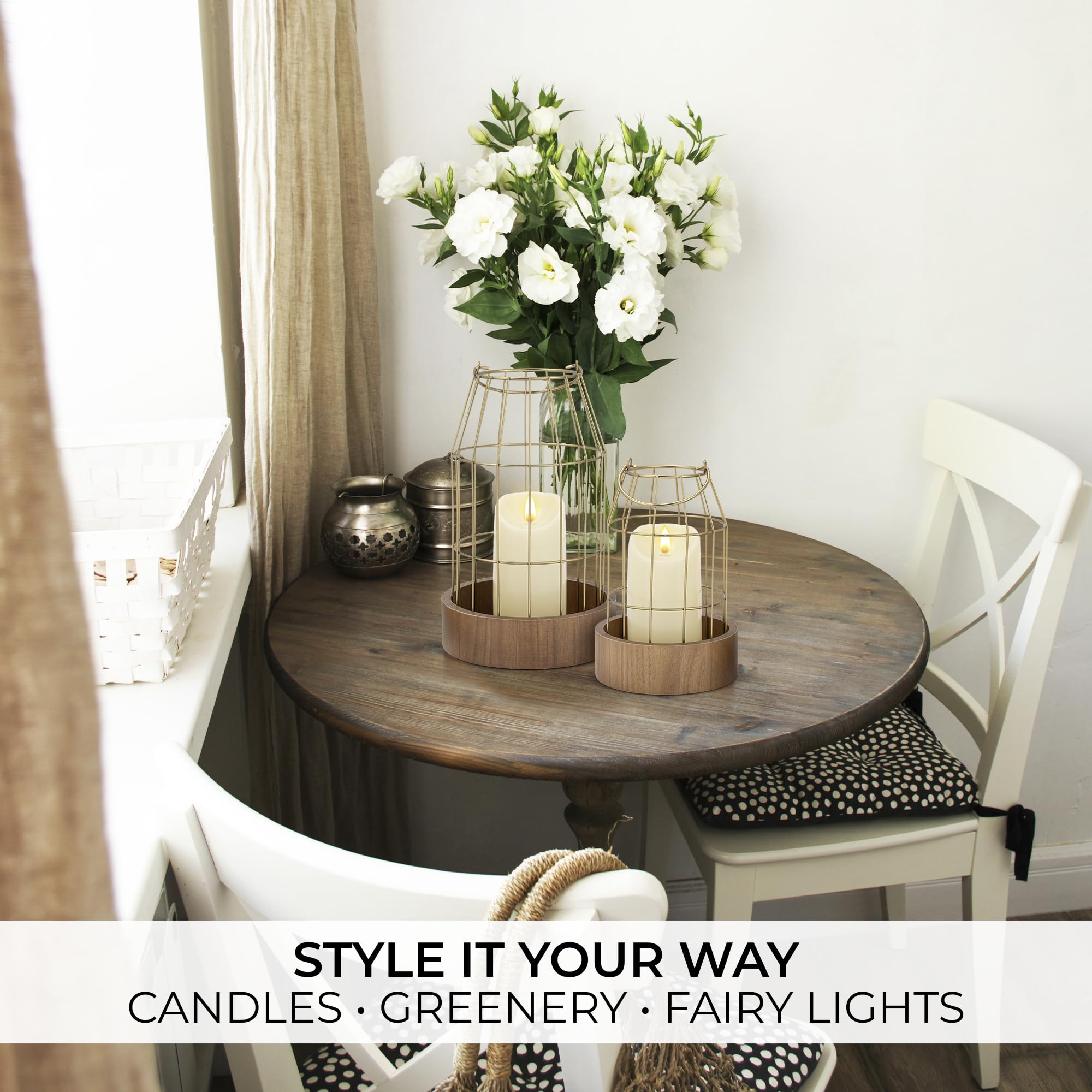 Decorate Exactly To Your Taste: Do it your way - the lanterns offer you countless decor options! They look amazing with LED candles, faux ivy or other faux plants, fairy lights, flowers and other decor elements - you can even add seasonal accents for Christmas, Halloween & more (please note: not intended for real candles)