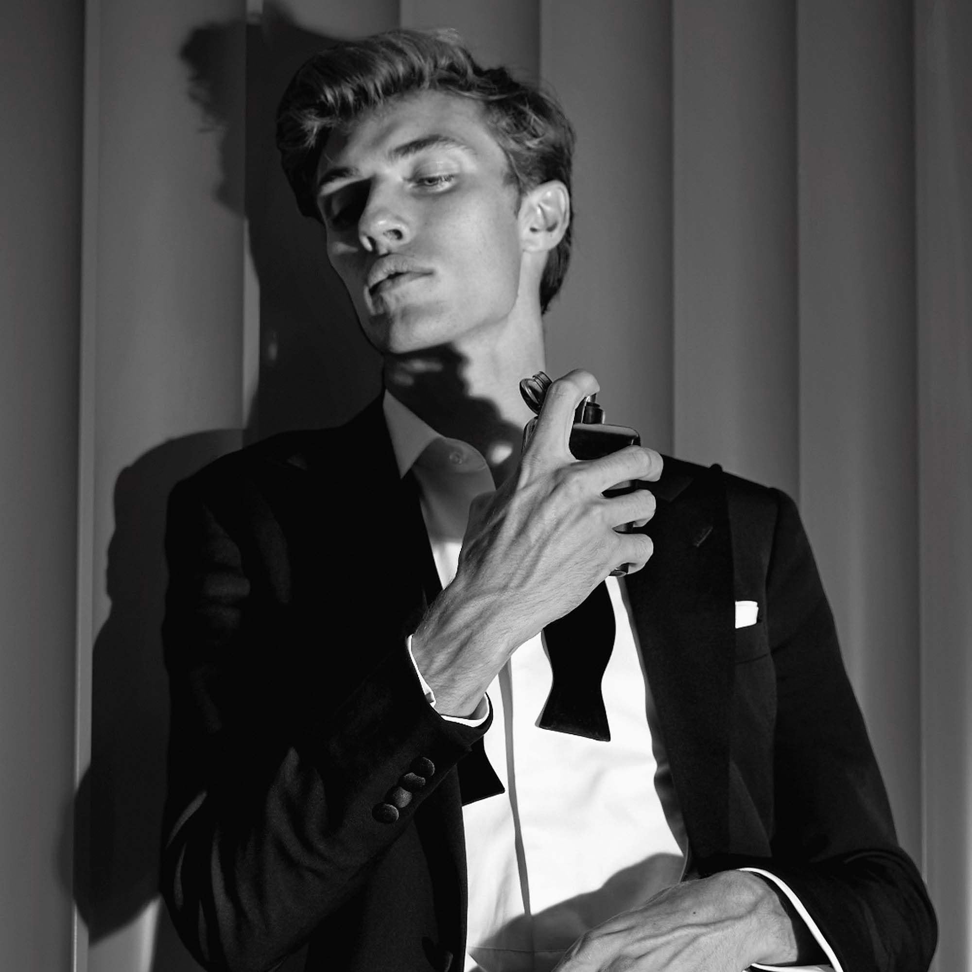 Remove the gunmetal cap and hold the matte translucent glass bottle 3-6 inches away from clean, dry skin. Spray 2-4 times, targeting pulse points. Let the grandest night of your life live on...