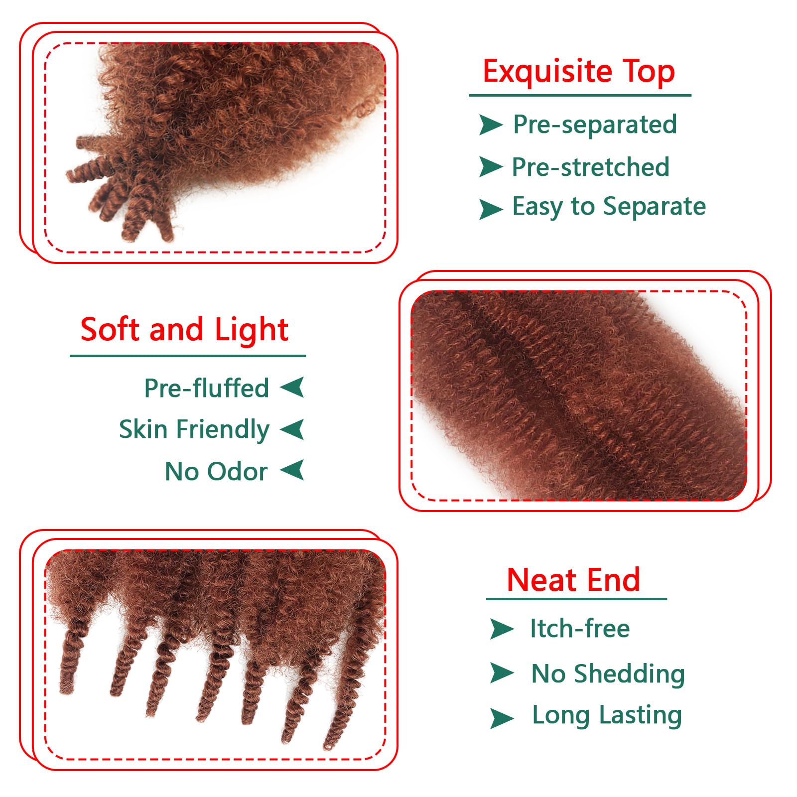 【Easy to Install】: Kinky twist hair is actually pre fluffed spring twist hair, it is pre-separated, easy to use, you will also get a crochet hook and five colored beads, help you customize beautiful hairstyles at home easily.