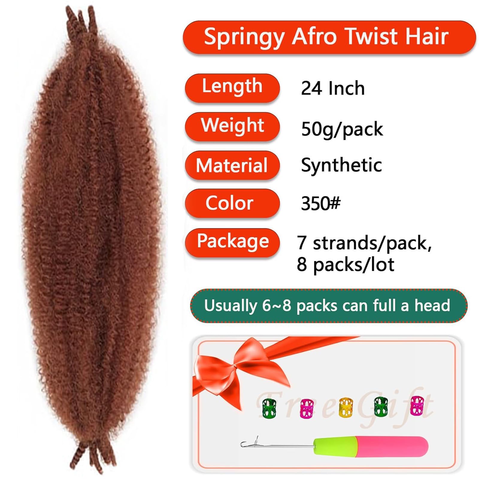 【Marley Twist Braiding Hair Information】: 24 inch springy afro twist hair, 7 strands/pack, weight: 50(±5)g/pack, 8 packs/lot, total weight:400(±5)g/lot, enough hair for a full head.