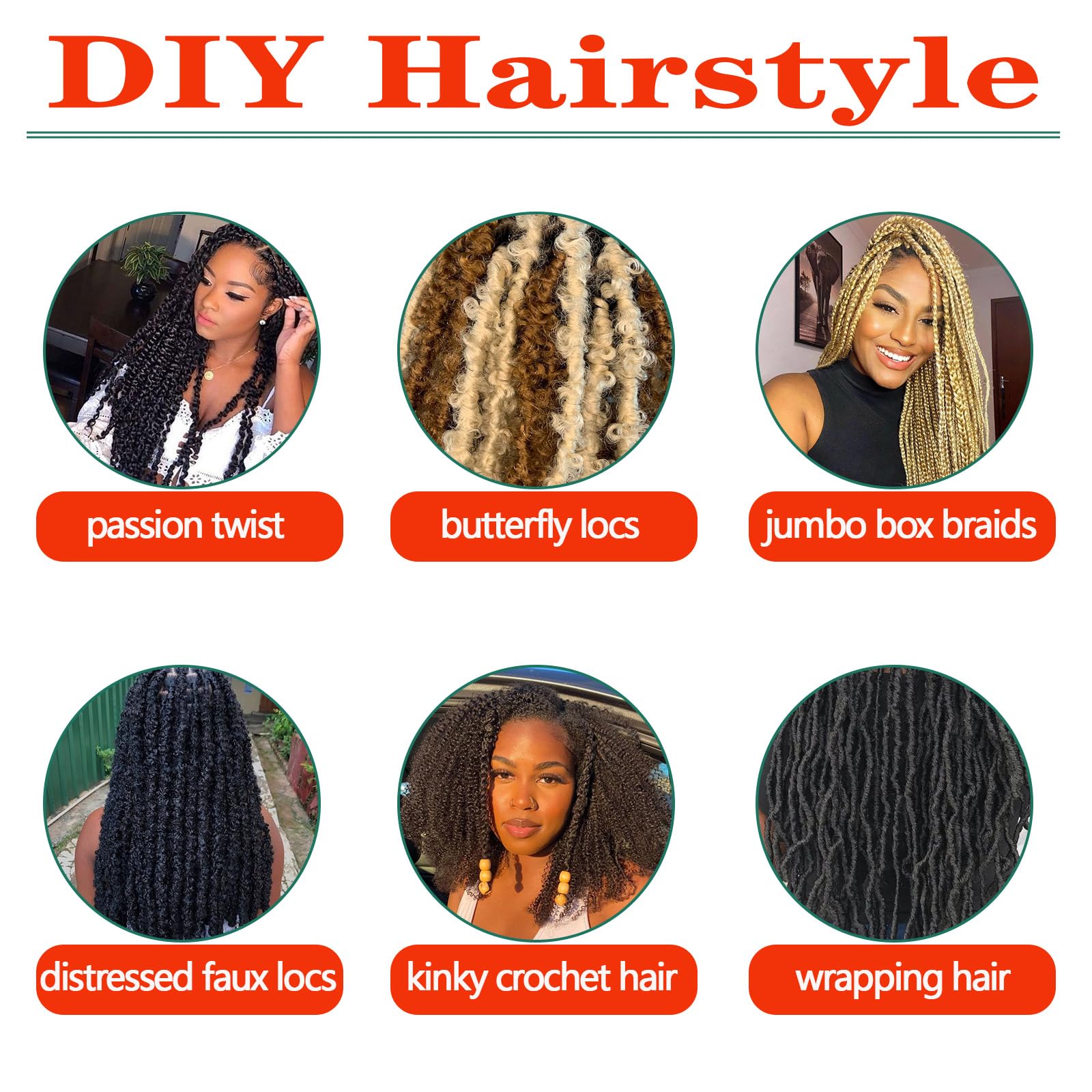 【Multi-purposes】: If you want customize a protectice hairstyle at home, this kind of kinky twist hair is your first choice. You can use our twisting hair customize passion twist hair, butterfly locs, distressed faux locs, etc. you also can use it as wrapping hair for your soft locs.