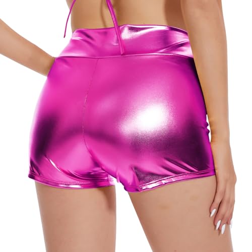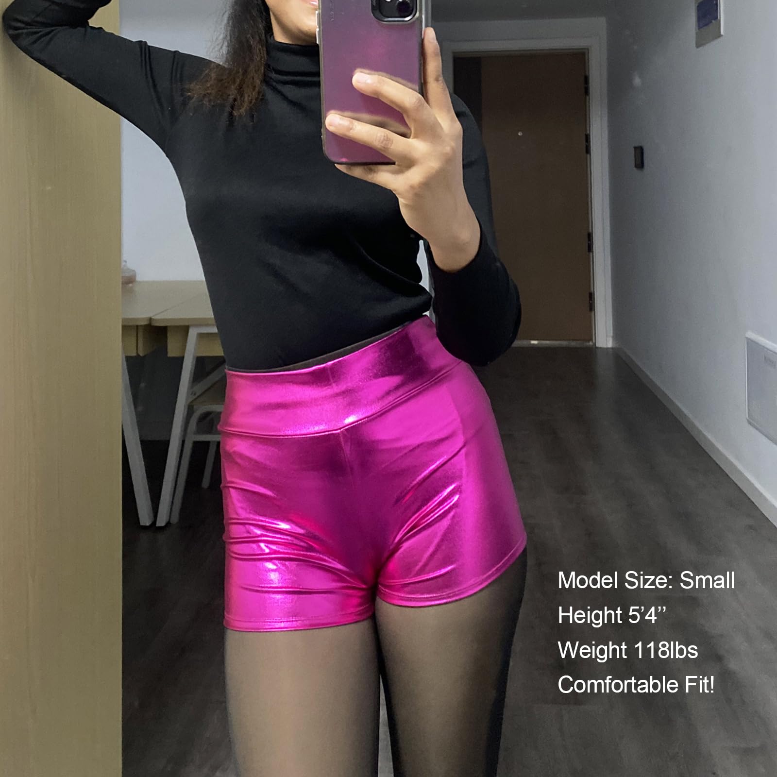 Women's metallic shiny shorts are great for music festivals, dancing, clubwear, disco party, pole performances, homecoming, and Halloween costumes.