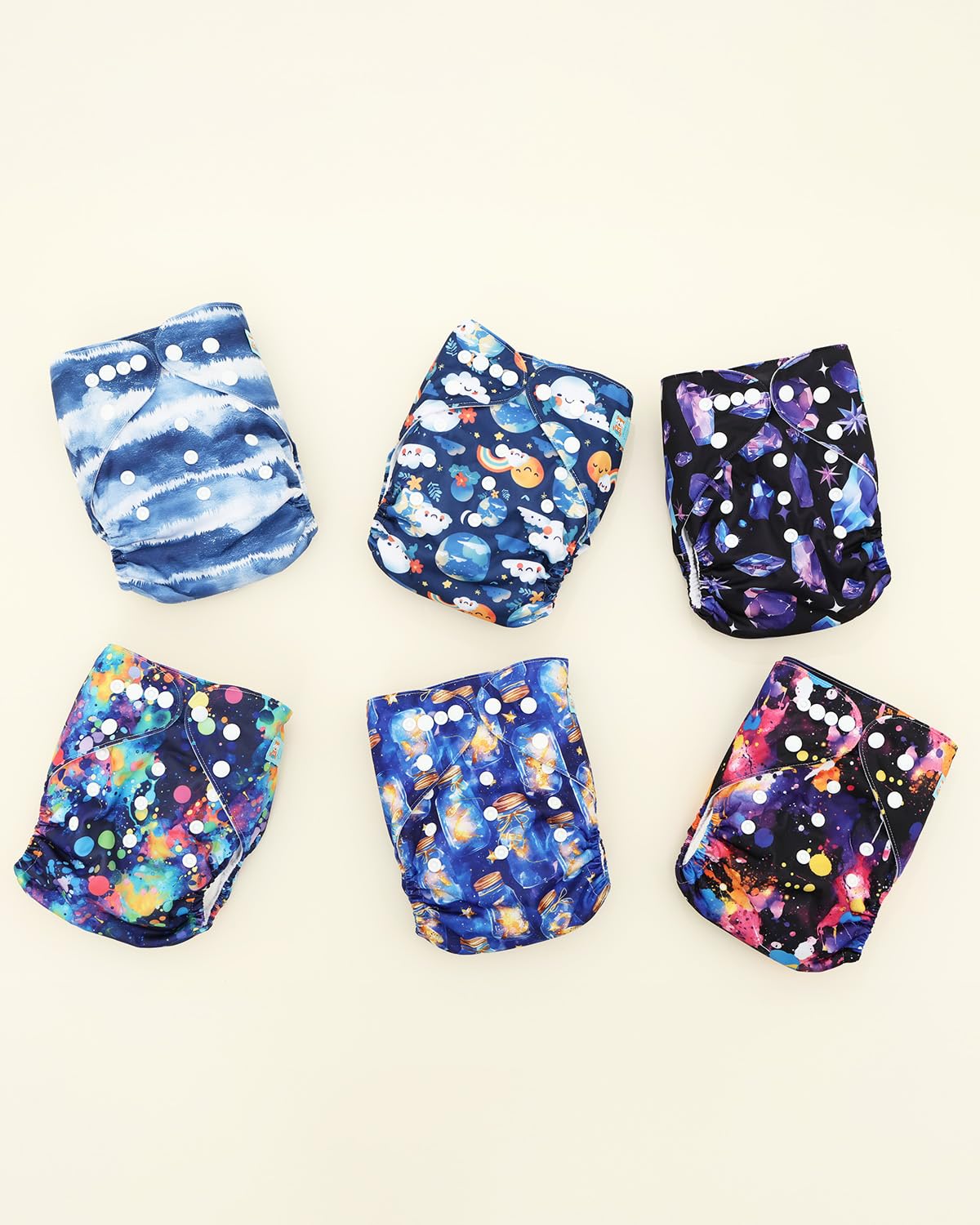 Packing List: 6 diapers + 12 inserts. Complete solution for lasting dryness and comfort.