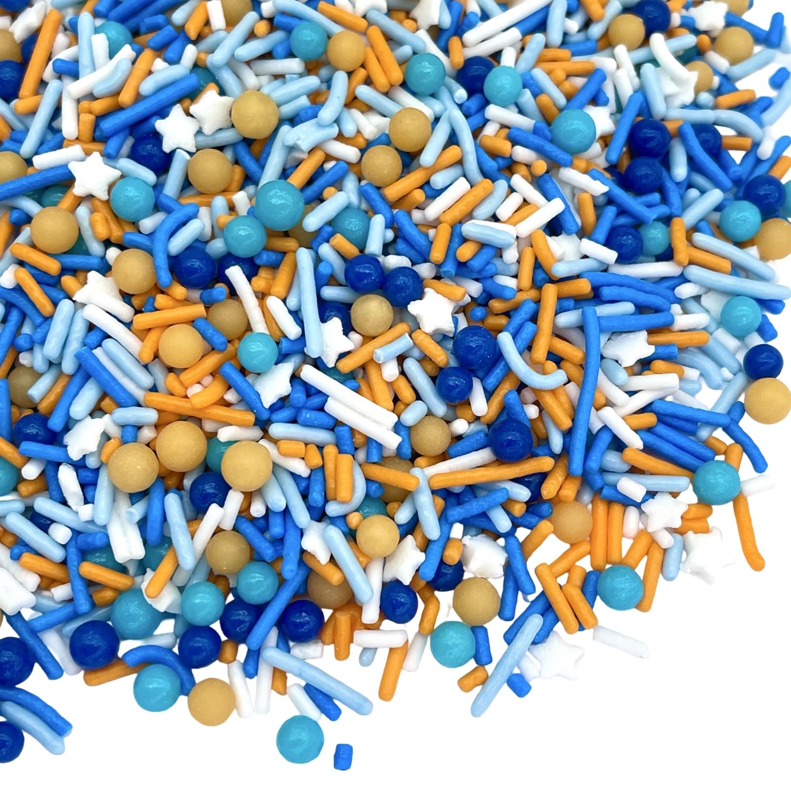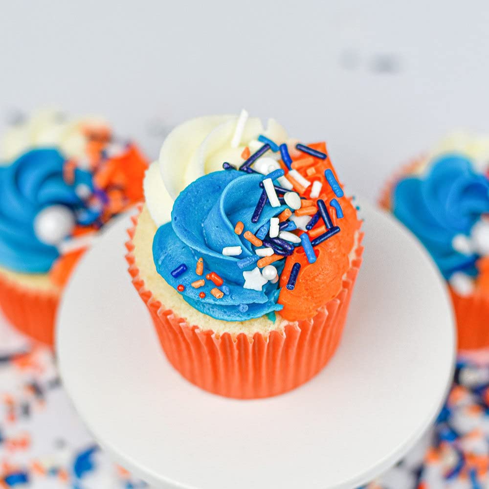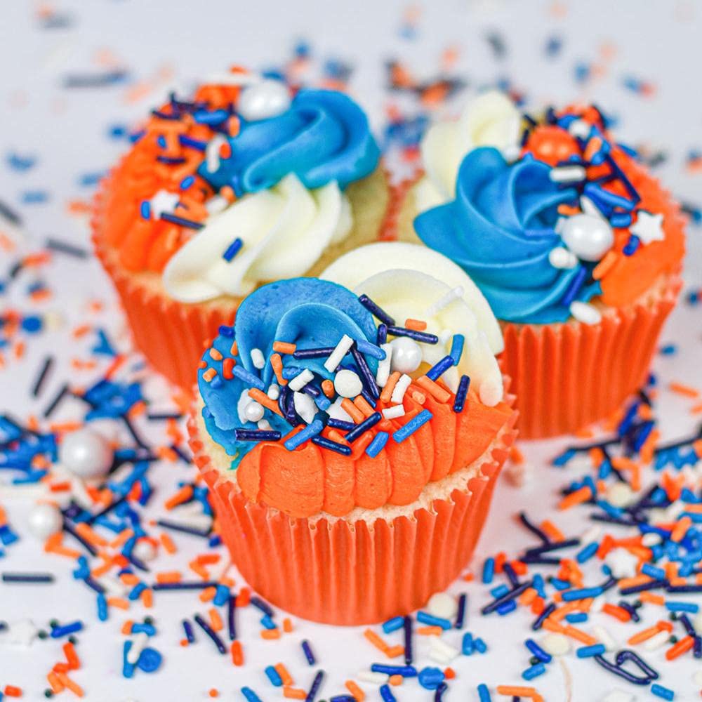 🔵 𝗕𝗟𝗨𝗘 𝗦𝗣𝗥𝗜𝗡𝗞𝗟𝗘𝗦 - These edible cake sprinkles also work great as cupcake decorations or ice cream toppings for their blue and orange sprinkles have vibrant color that adds beauty and satisfying flavor