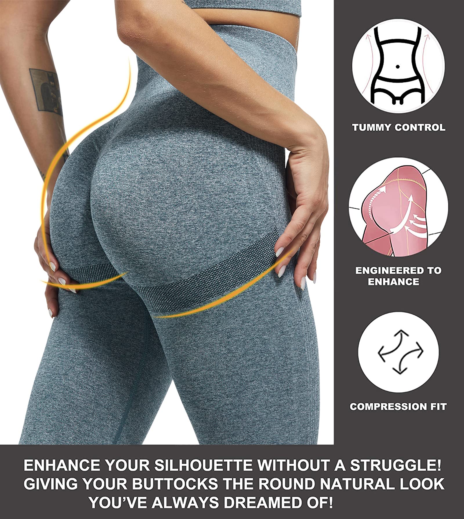 ✔ BUTT LIFTING LEGGING - This sensual push-up legging style will smooth both the legs and the tummy while targeted compression creates dramatic definition under the rear-end, Bum lifting bands design cinch your backside with invisible hold around your butt, Works like a push up bra for your booty, providing a little lift