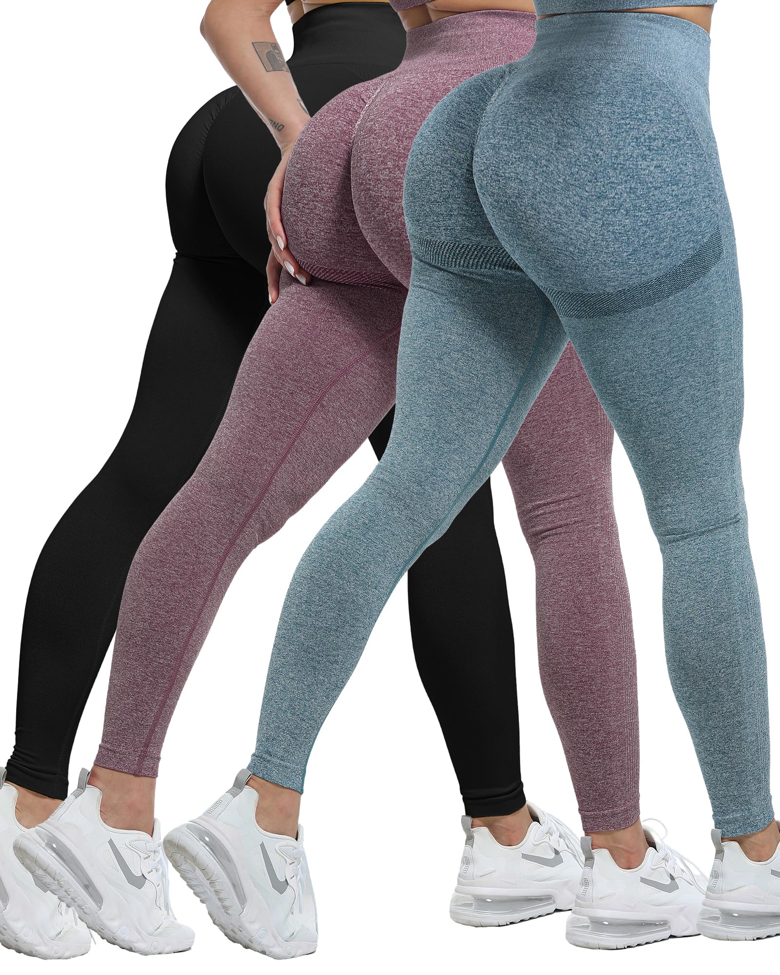 ✔ SEAMLESS HIGH WAISTED LEGGINGS - are what you’ve been waiting for, Their flattering fit and contouring ruched detail to the bum meet with a supportive and supple seamless fabric to advance your performance, Features compression in targeted areas that gently smooths and sculpts the backside and legs for a feminine, shapely look