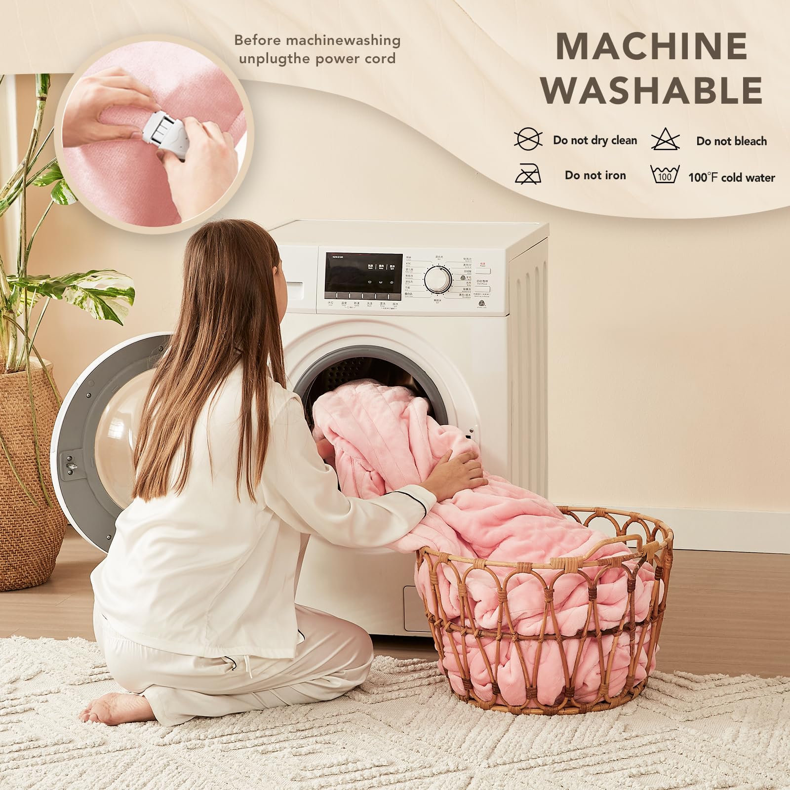 MACHINE WASHABLE: Homemate Heated blankets can be machine washed, but please read the instructions carefully before cleaning to avoid improper operation, which can avoid safety problems and prolong the service life of electric blankets.