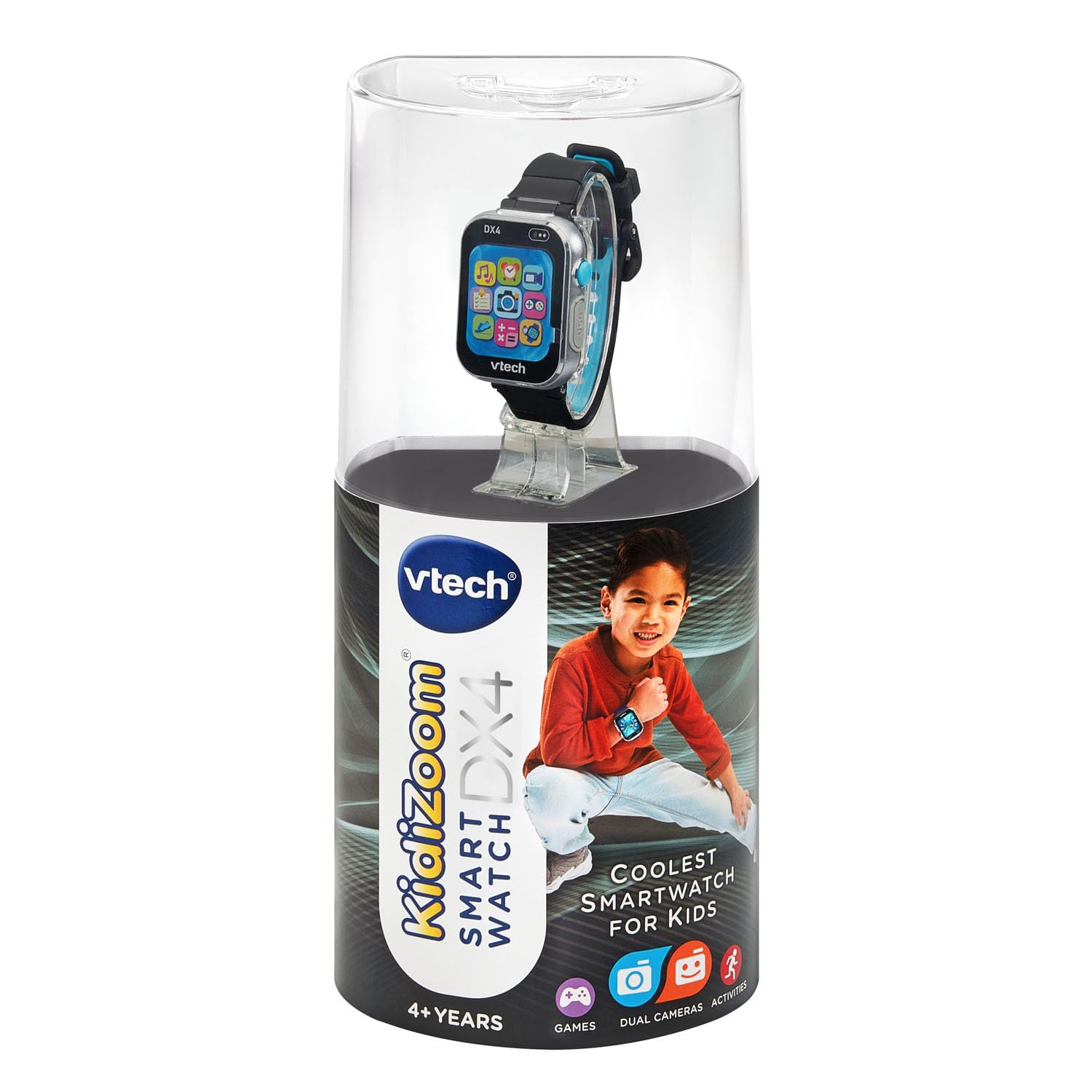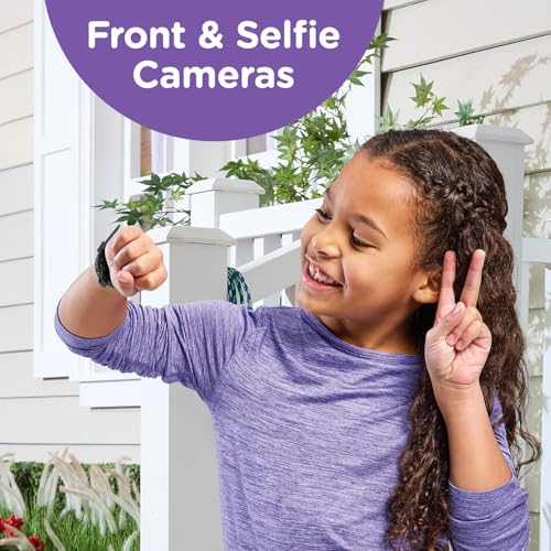 Strike a pose! This smartwatch features two cameras, a high-resolution screen, a splash-proof metal body and a fashionable watchband that makes this full-function smartwatch the coolest tech around. Get creative with the dual cameras to personalize your clock face, photos and videos with the effects and filters. Find AR monsters in the real world, compose music using instruments and sound effects, and play exciting movement games to see your step count soar. Practice telling time with over 50 clock faces or shake the watch to hear the time out loud. Download additional games and more from the Learning Lodge. Set to English, Spanish or French. Intended for ages 4+ years. Includes built-in, rechargeable lithium-ion battery and micro-USB cable. Do not charge using a third-party adapter.