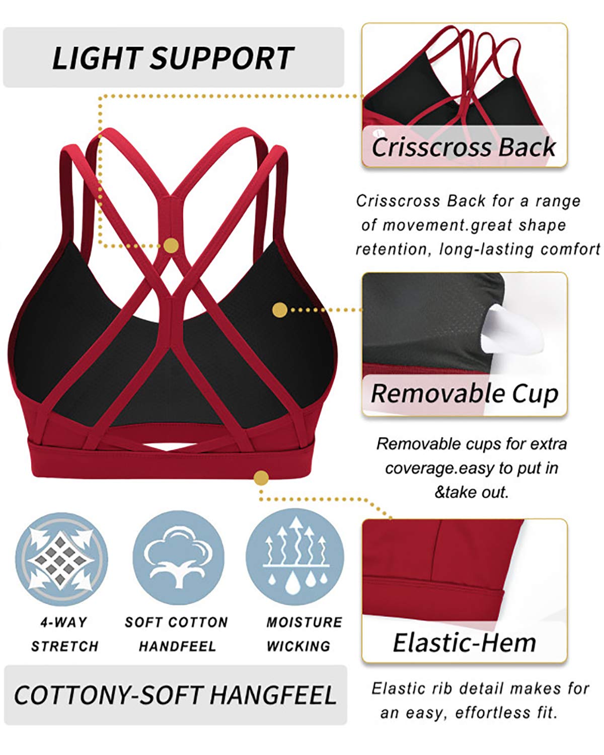 CRISSCROSS-BACK SPORTS BRA:RUNNING GIRL sports bras for women detailing gives the womens sports bras with Crisscross its signature style.But it doesn't just look good,it's hard working.And the running sports bra for women wrapped in durably soft performance stretch fabric keep you comfy and supported.The cotton-like meterial,soft and comfortable to wear.High support sports bras for women let you twist with ease,running bras for women high impact design offers a extra back support.