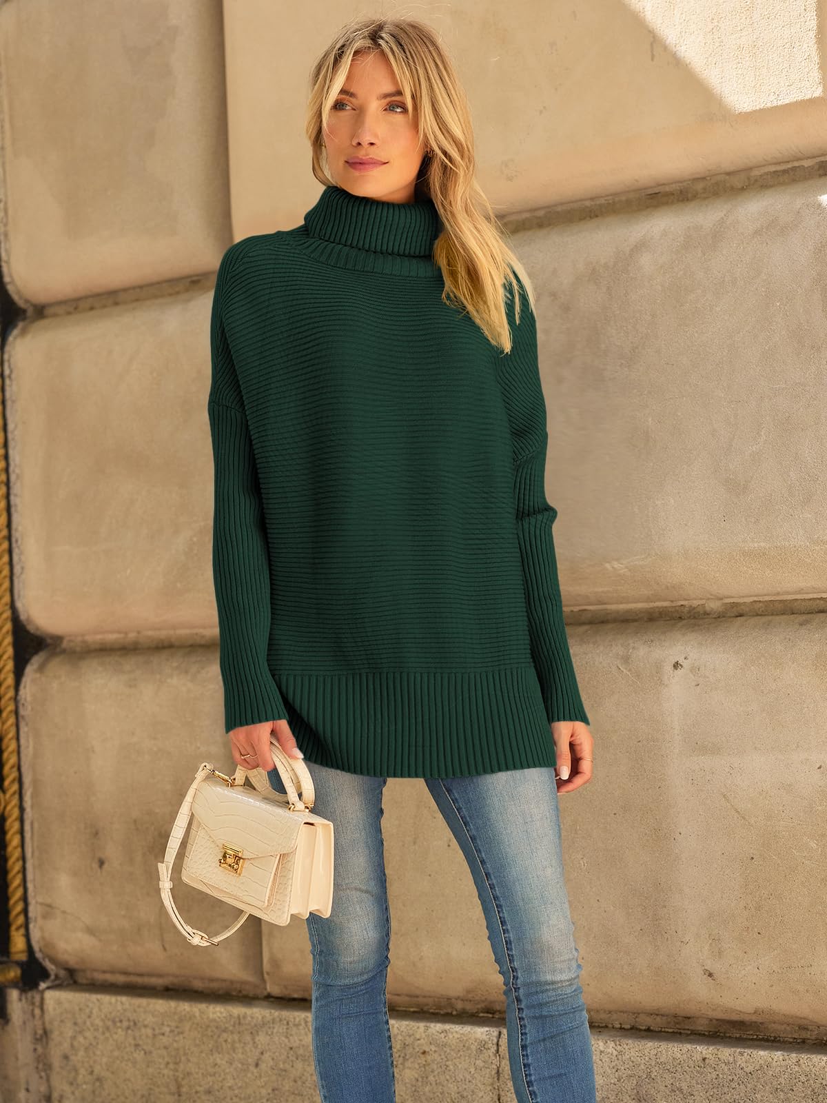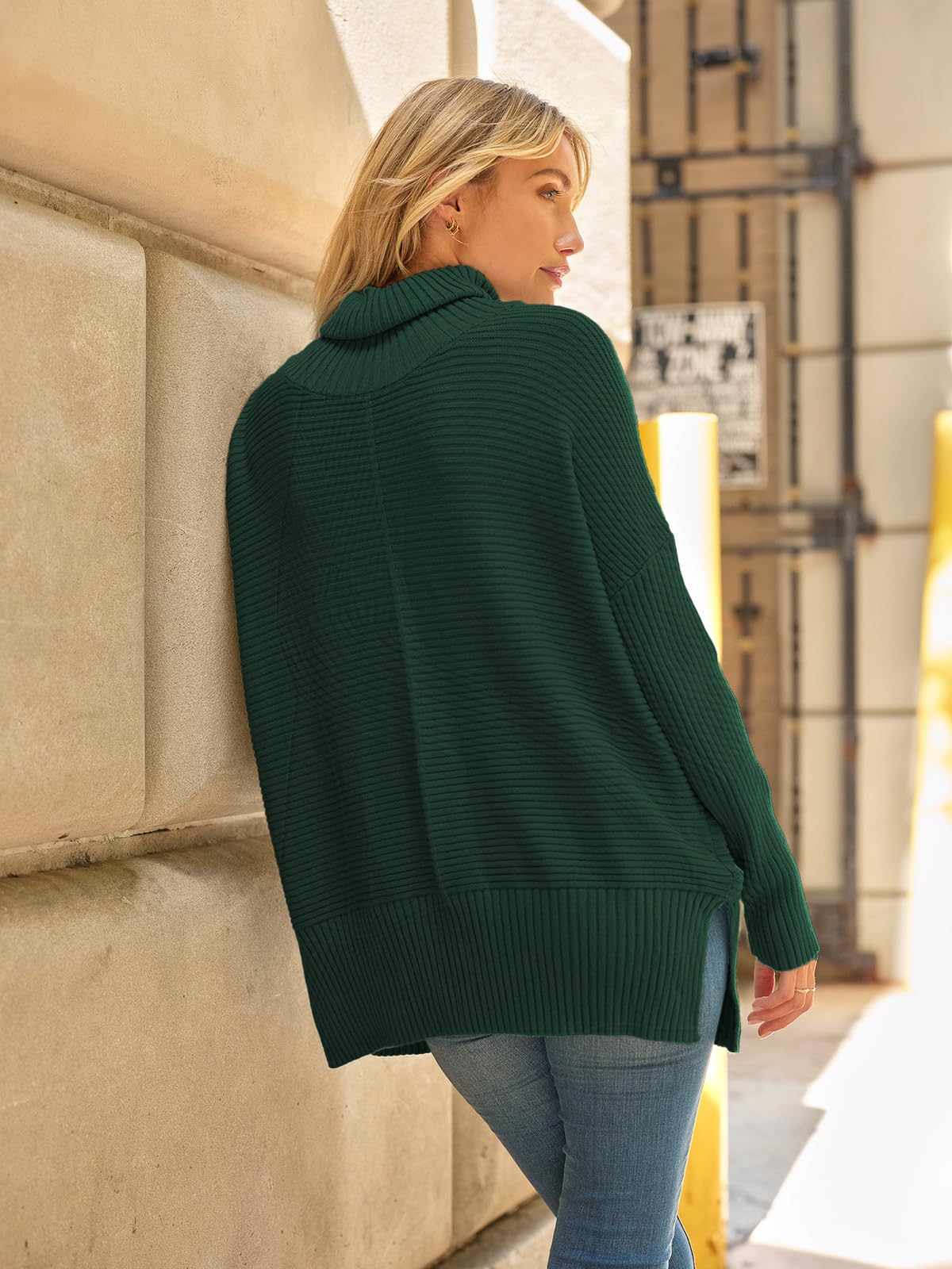 Effortless Style, Inside and Out - The timeless turtleneck and relaxed oversized silhouette create a look that's both casual and refined. This medium-weight sweater is your smart layering solution—perfect for fall days, and easily layered under a coat when it gets colder, then comfortably worn alone indoors.