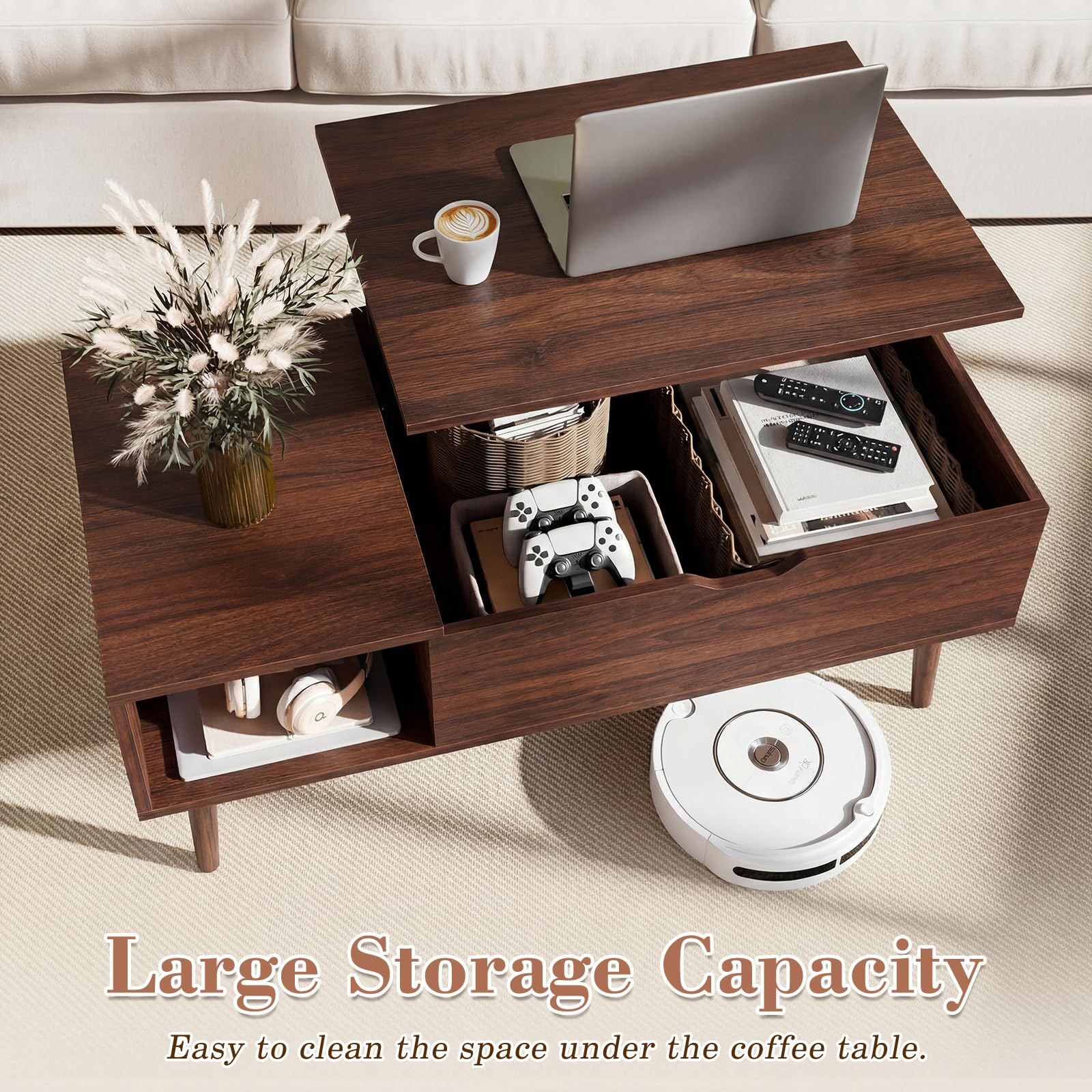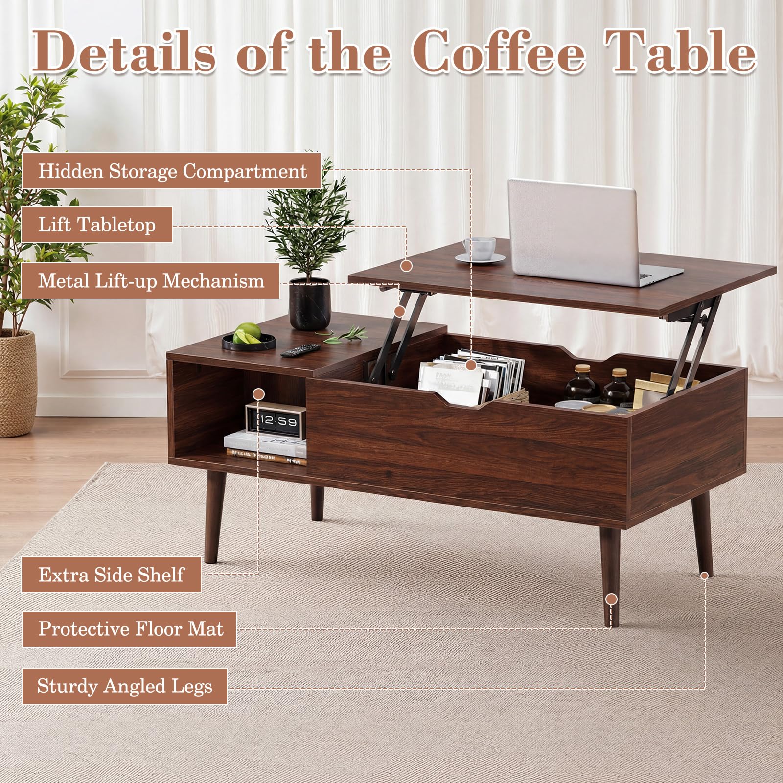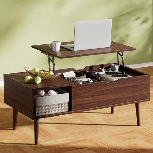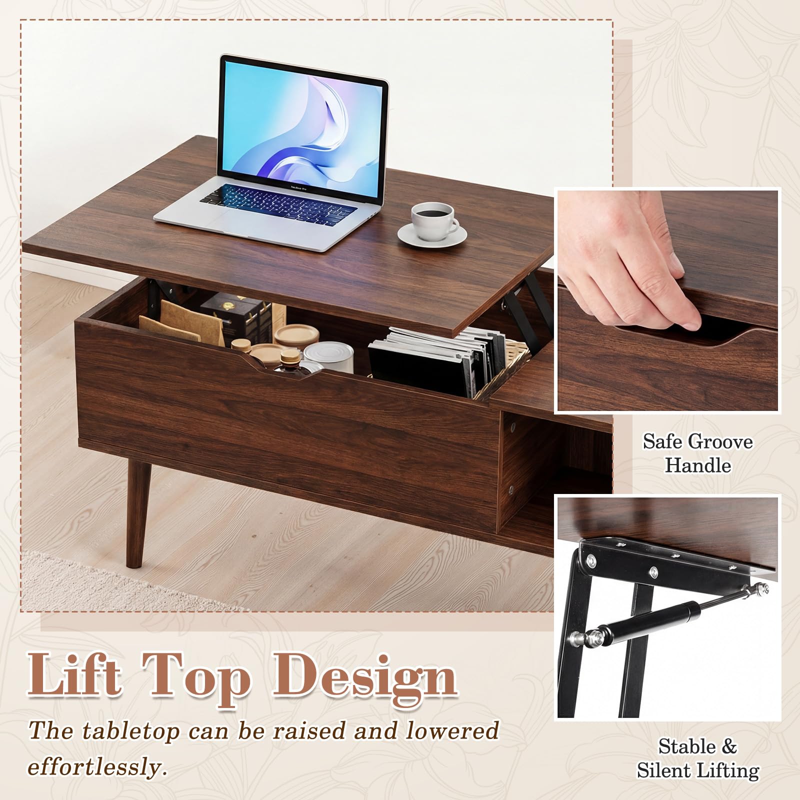 【Special & Stable Design】There is a notch on the side of the small coffee table where you can easily open the lid and avoid hurting your fingers. The high-quality metal mechanism enables the tabletop to be lifted up or lowered down easily without noise. The storage coffee table made of selected materials will not wobble once correctly assembled.