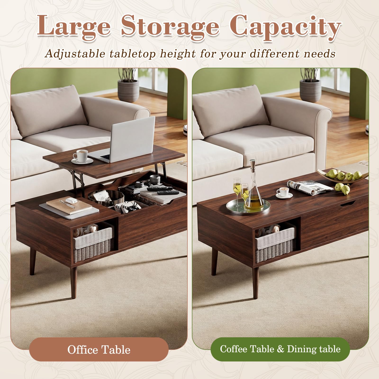 【Lift Top Design】The tabletop of this coffee table can be effortlessly raised to the right height (elevated to 6.3”). It is not just a lift up coffee table, and it also serves perfectly as a temporary dining table or a computer desk with an elevated floating tabletop.