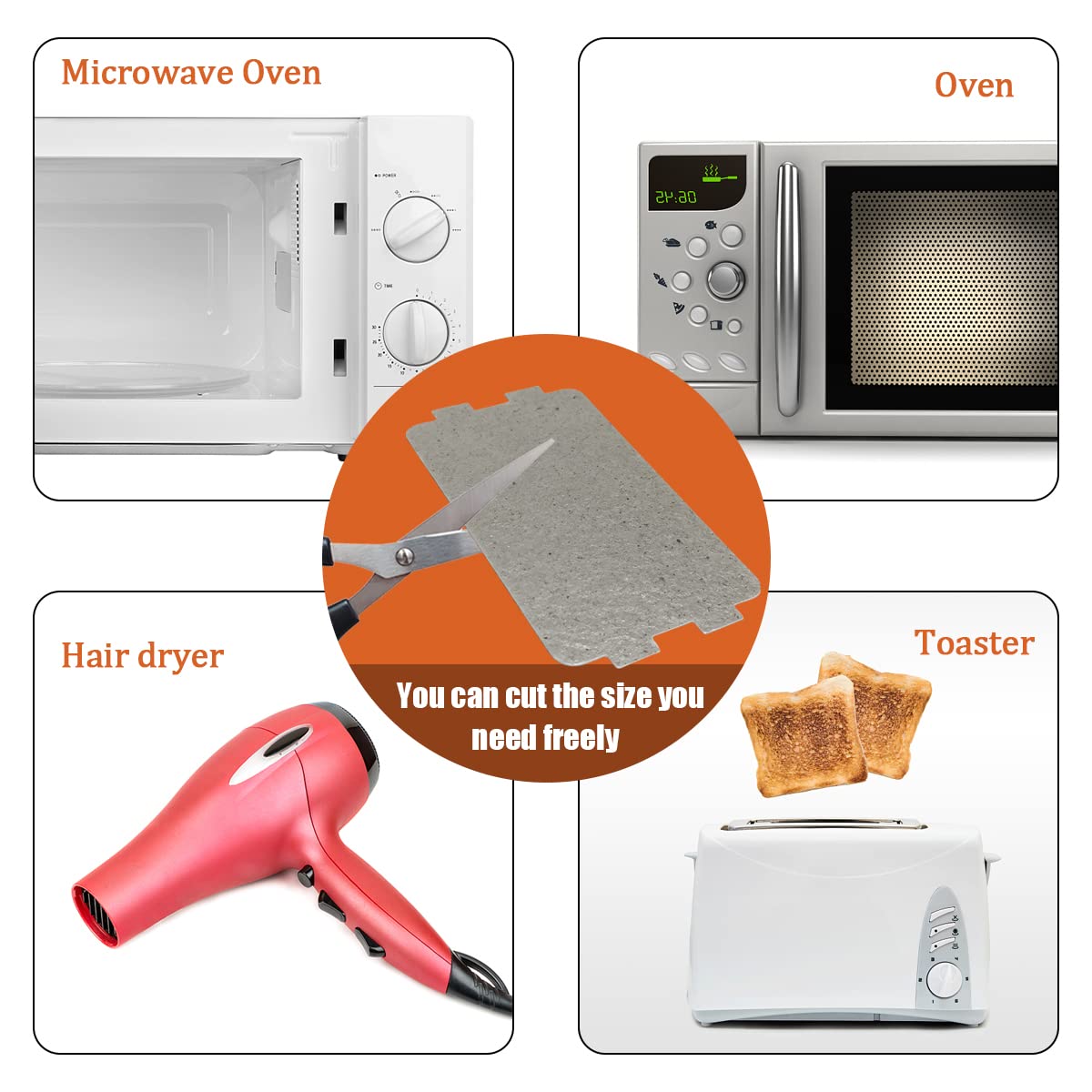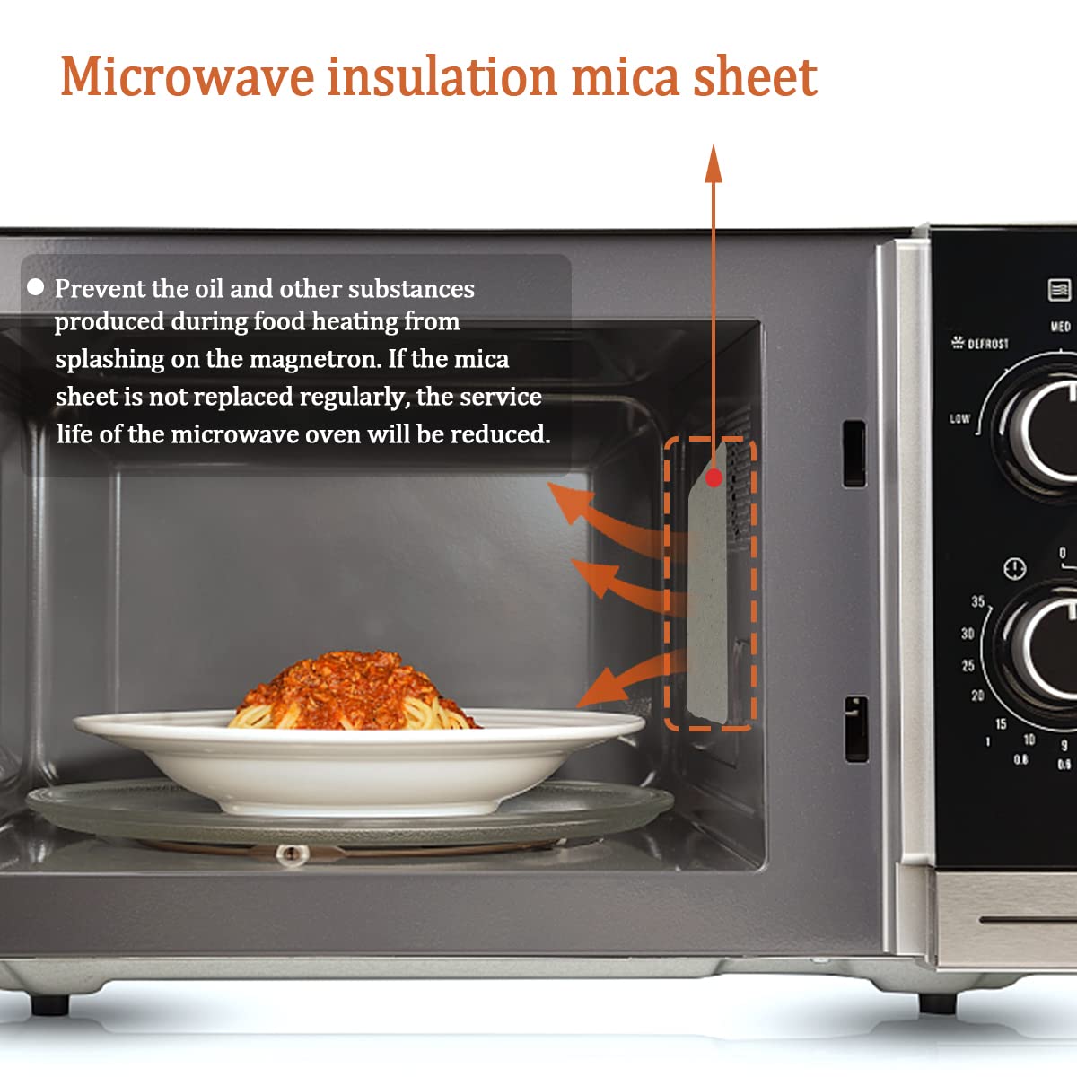 Use for: Microwave mica chips can effectively prevent water or oil and other substances from splashing on the magnetron or other components during the heating process of food. Protect the microwave oven from burning.