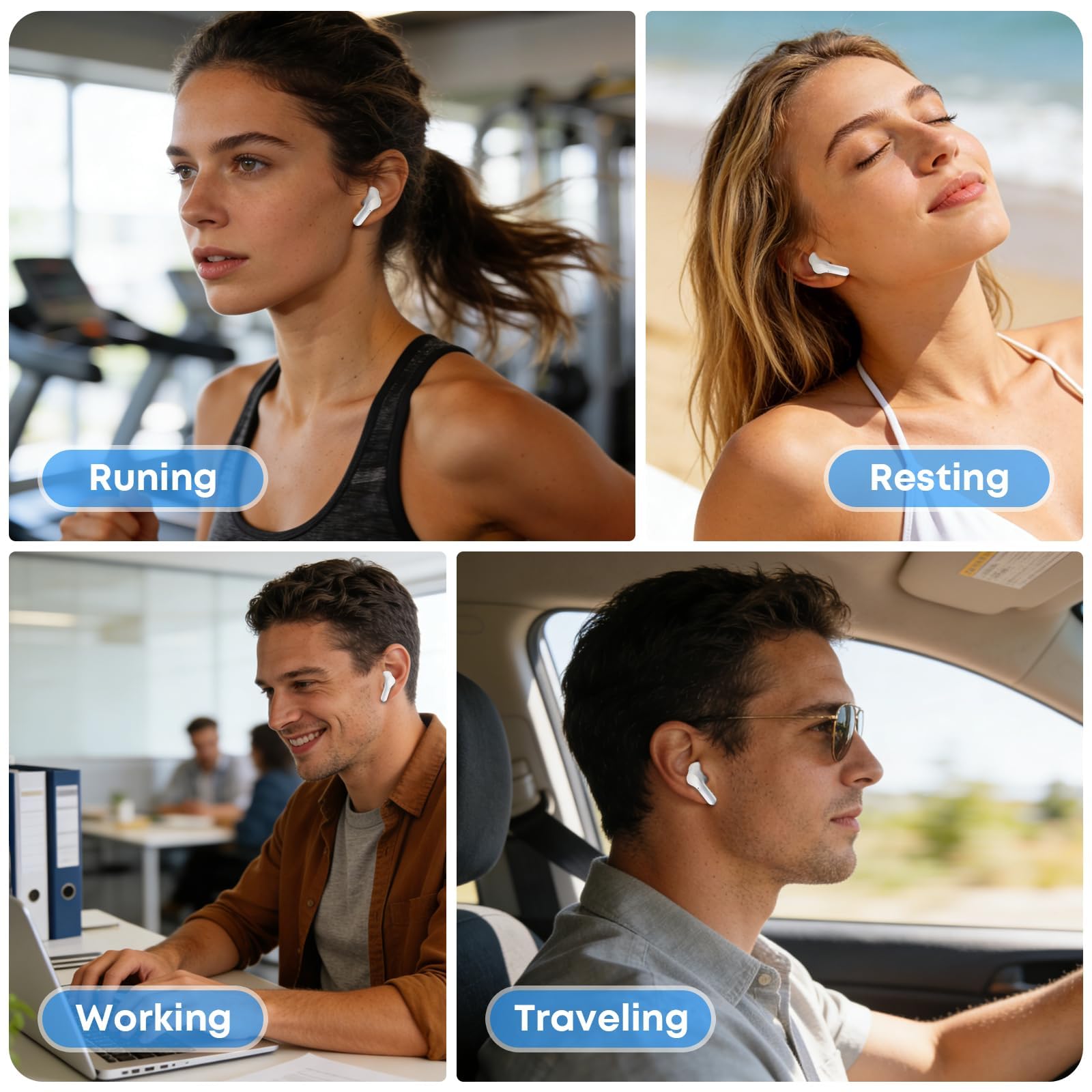【IPX7 Waterproof for Your Diverse Life】Featuring an IPX7 waterproof rating, these earbuds are designed to withstand sweat, light rain, and everyday moisture exposure, making them suitable for workouts, commutes, and outdoor activities. With long-lasting battery life that supports hours of continuous use, they provide reliable audio whether you’re exercising, traveling, or relaxing. The durable, lightweight design offers practical protection for your daily routine.