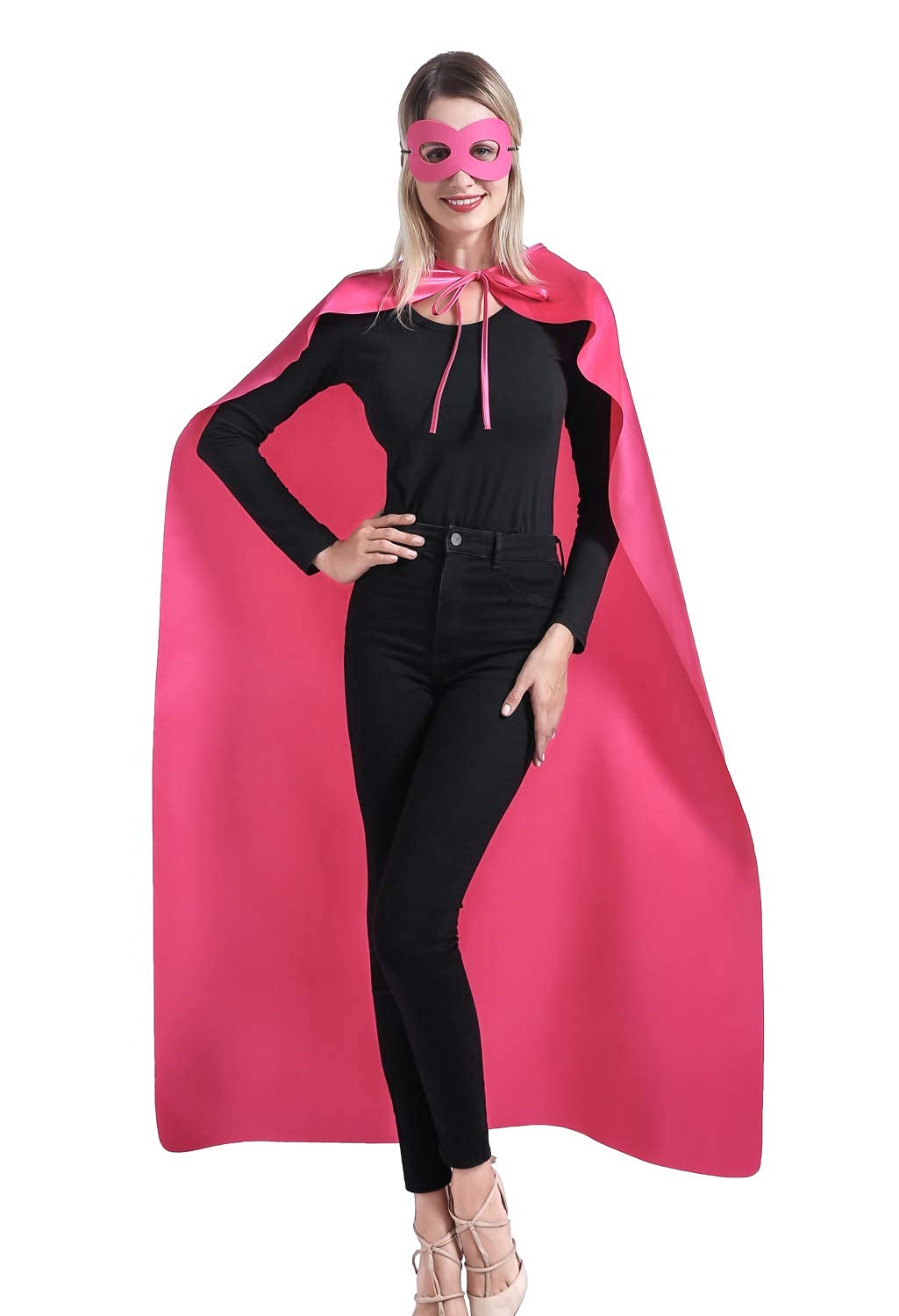 Adult superhero cape and mask set includes:1 cape and 1 color matched mask