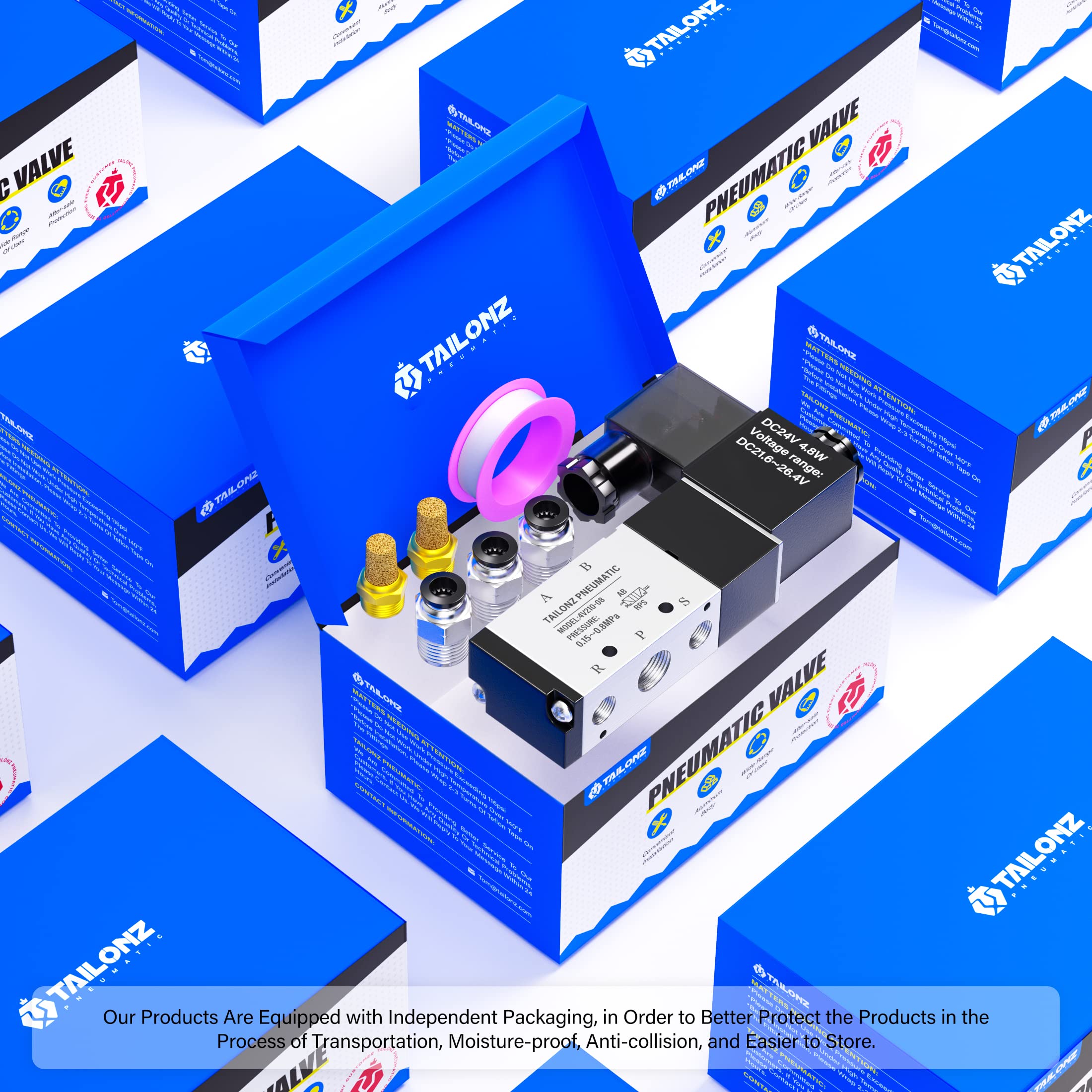 【Size】Outlet port: 1/4 inch (about 0.6 cm) NPT; Inlet port: 1/4 inch (about 0.6 cm) NPT; Exhaust port: 1/8 inch (about 0.6 cm) NPT; We provide pneumatic fittings for direct connection to 1/4 or 6mm air hose.