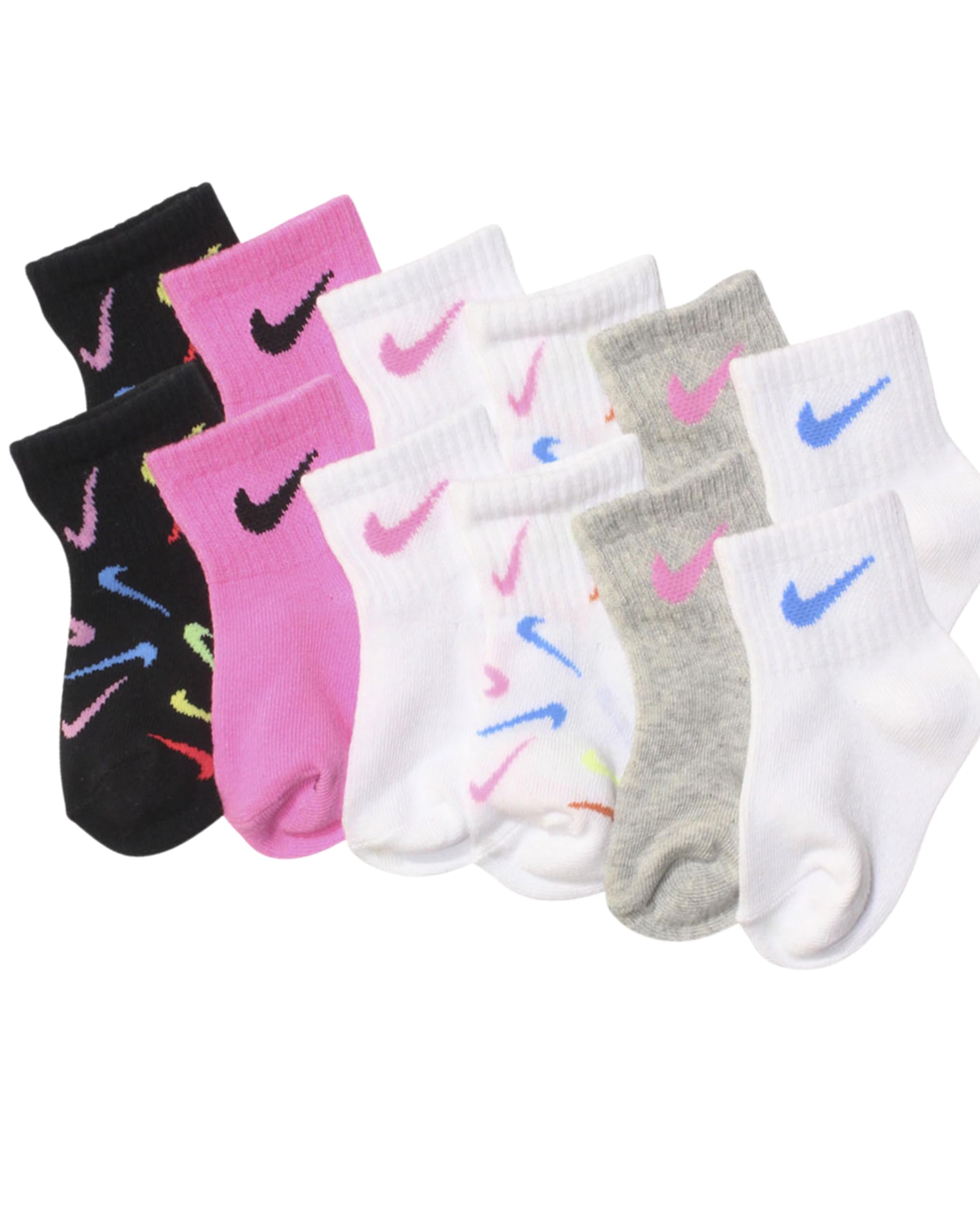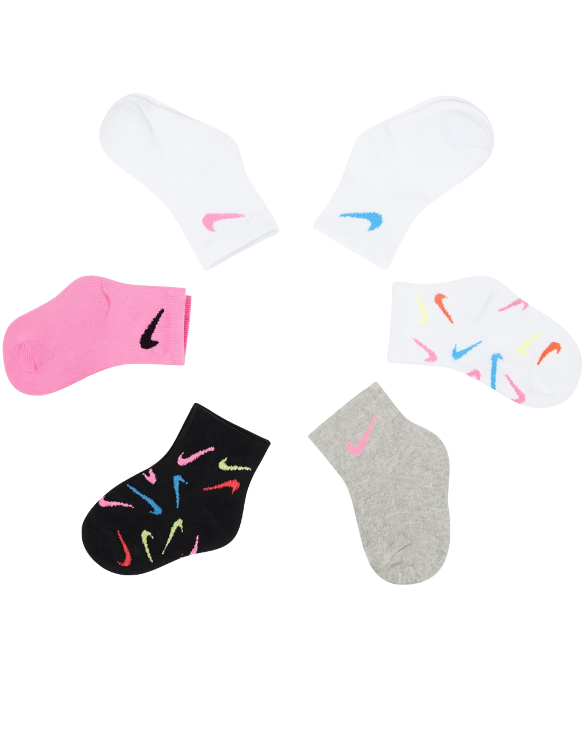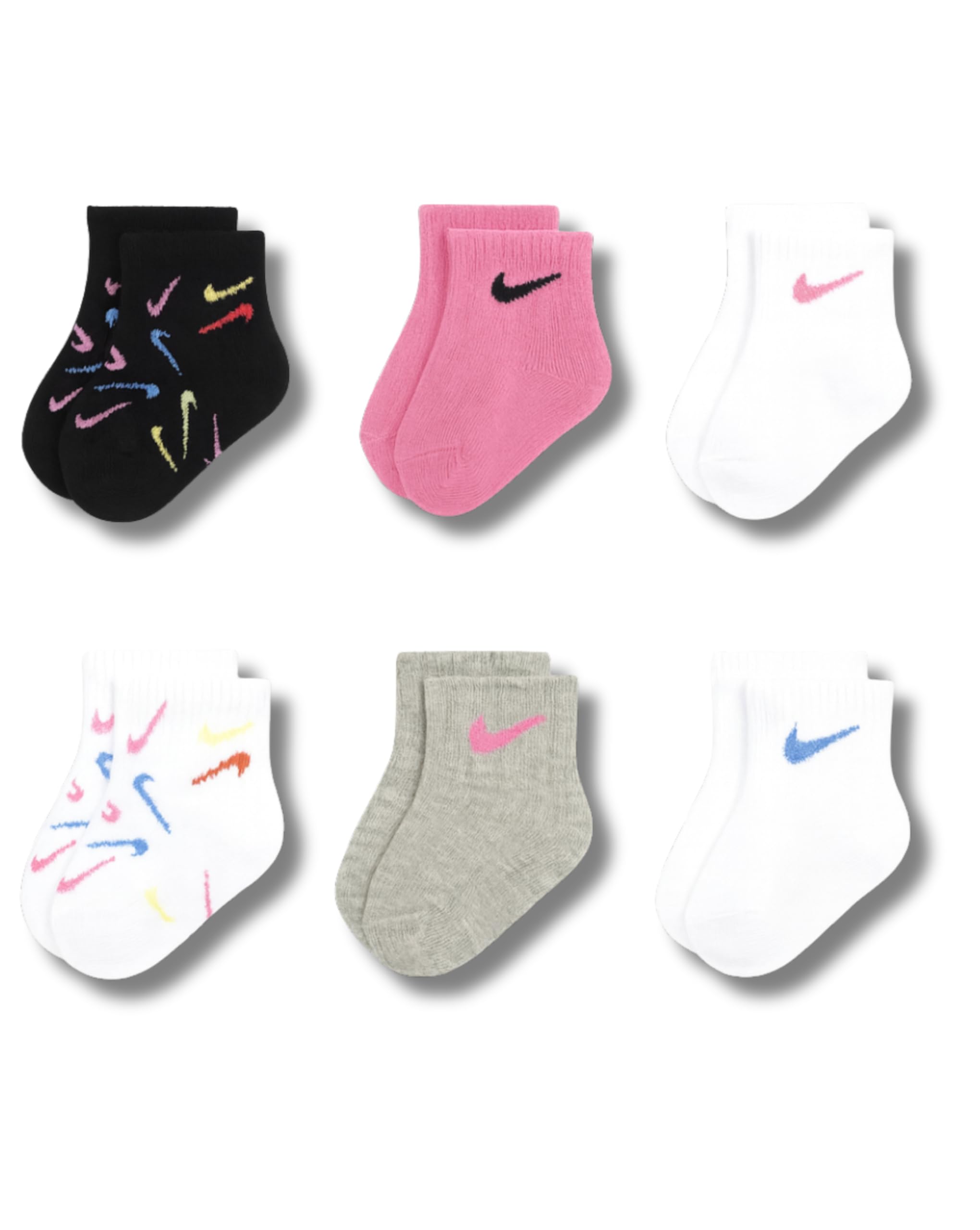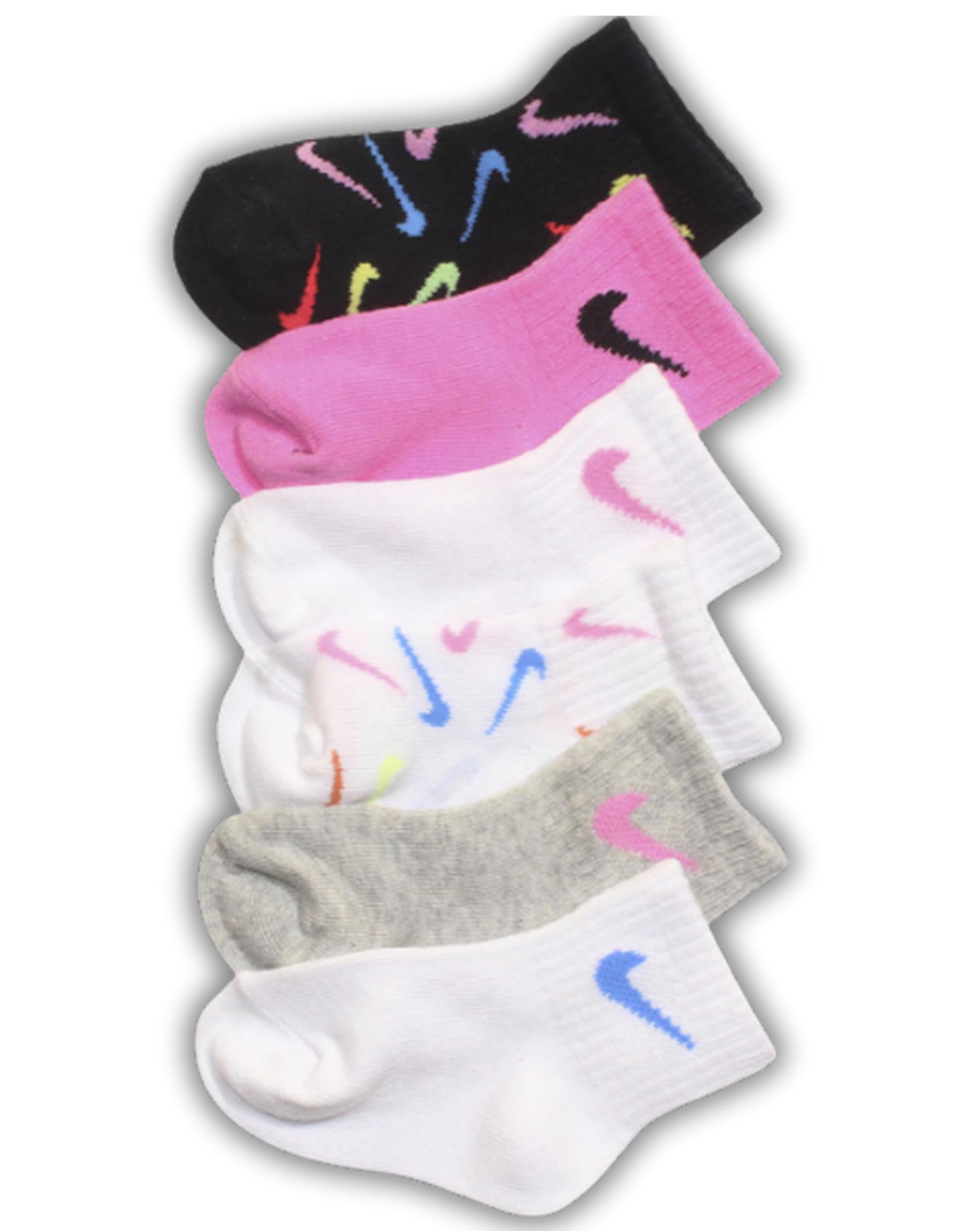 Description Make every step comfortable with the Nike Little Girls Swoosh Ankle Socks 6-Pack Set, a thoughtful and practical gift for active kids. Crafted from a soft cotton-blend fabric, these socks deliver all-day comfort and flexibility for play, school, or sports. The signature Swoosh design adds a classic Nike look, while the six-pair bundle makes it a convenient gift option for parents or relatives. Perfect as a holiday stocking stuffer or everyday essential, these socks combine comfort, style, and value in one set.