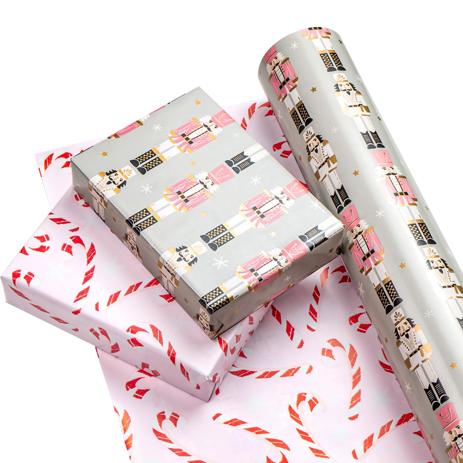 Reversible Design: Pink and white Nutcracker printed on one side, candy cane printed on the reverse. Two different designs make unique and varied gift presentations easy.