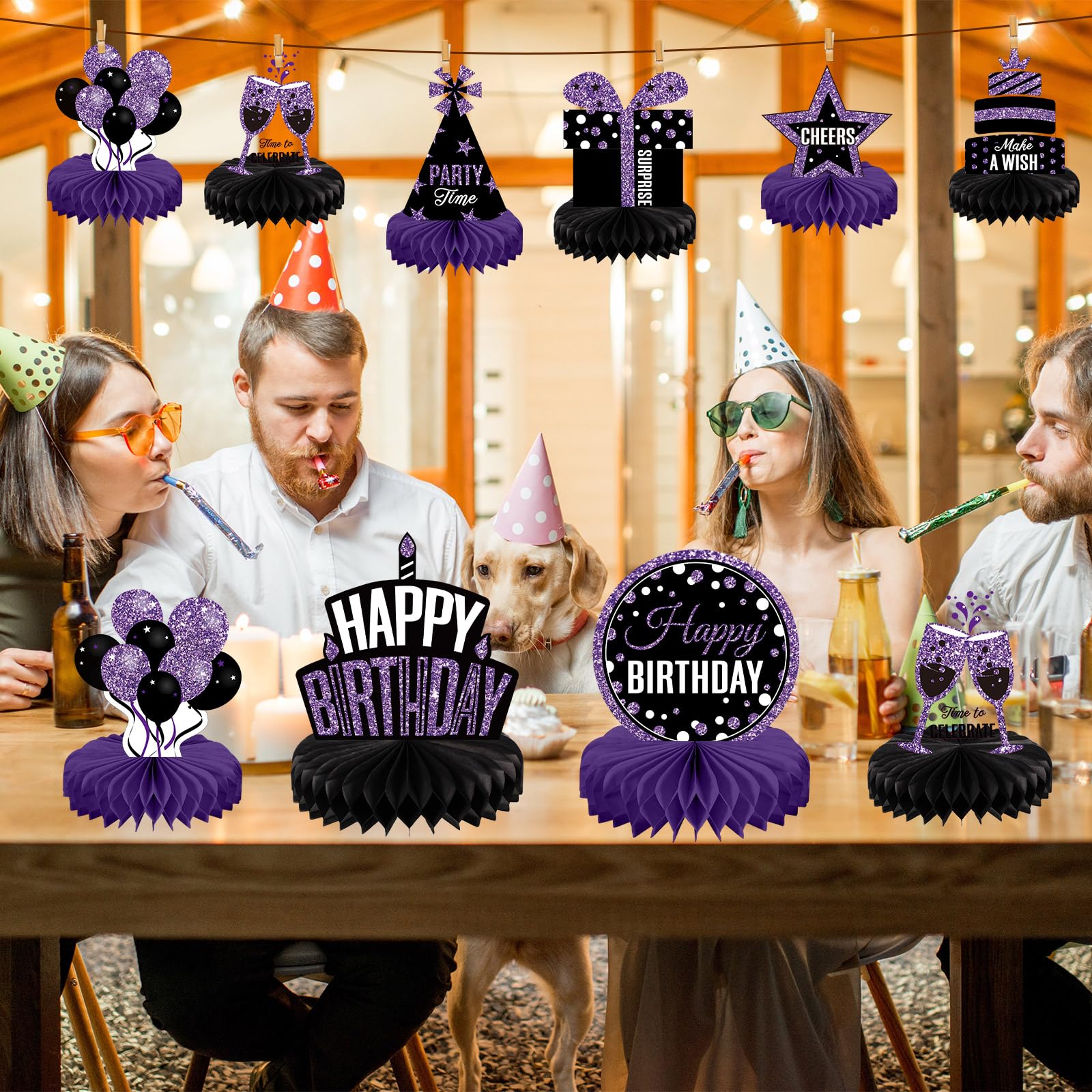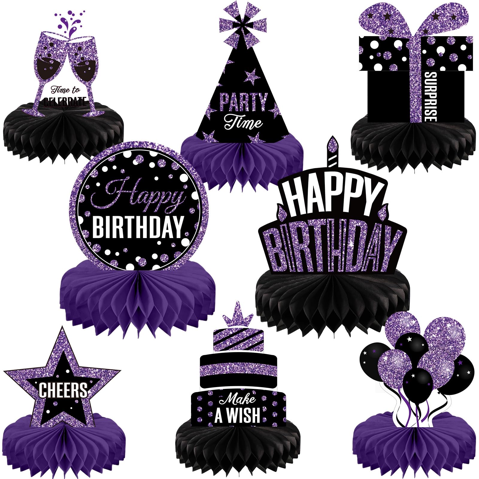 Package Includes: you will receive 8 purple black birthday party honeycomb centerpieces in 8 different designs, sufficient quantity and various styles to meet your birthday party decoration needs and make your birthday themed party a hit