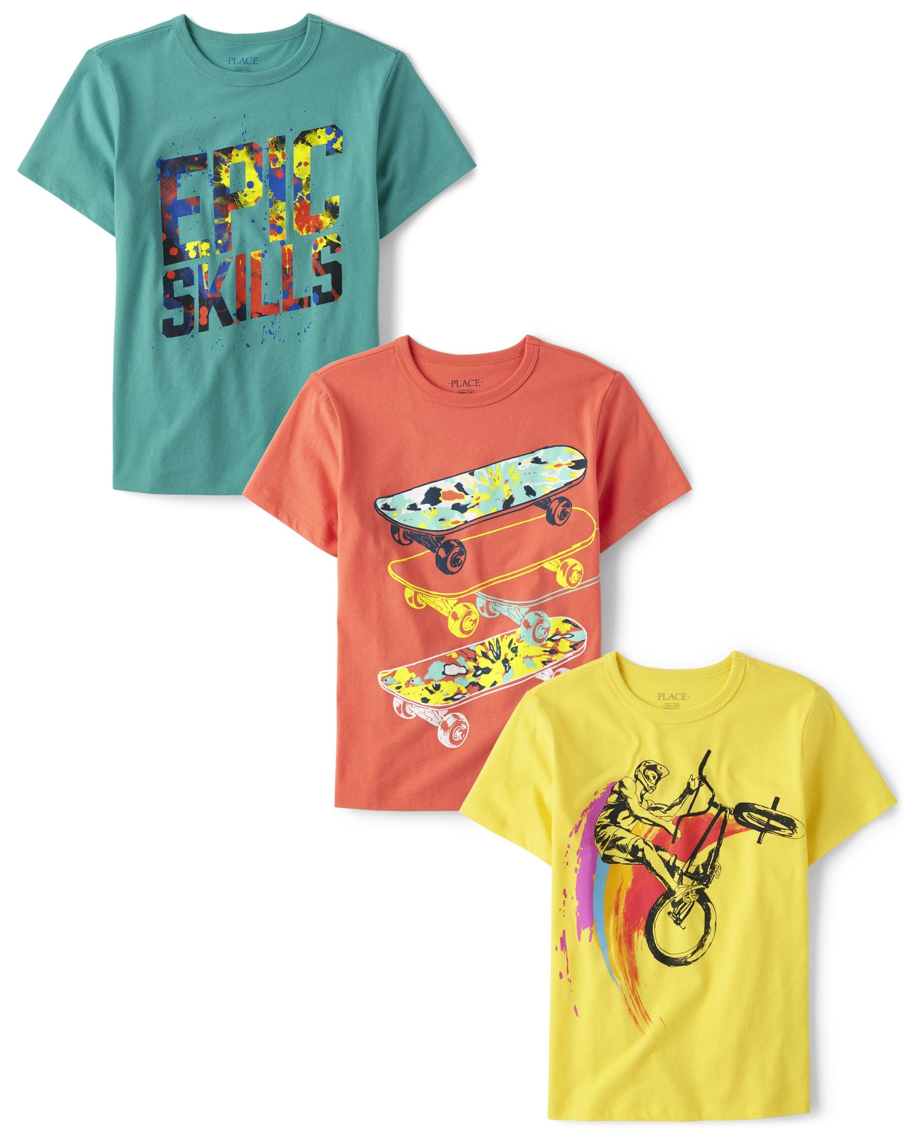 MULTIPACK — 3-pack of graphic tees: 1 style with game controller graphic design at front; 1 style with gaming controllers graphic design at front; 1 style with 'One More Level' graphic design at front