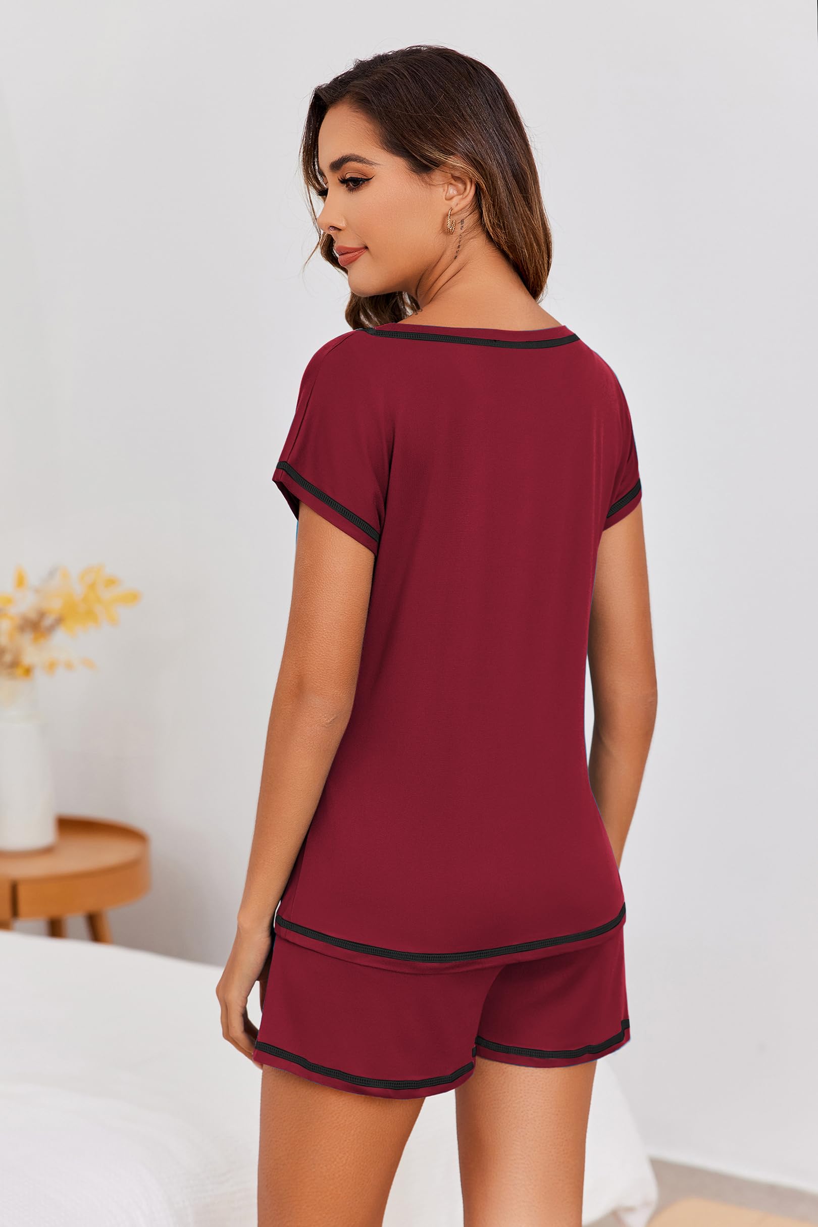 Features: The 2 piece short sleeve pj set fits well and allows for freedom of movement. Sleepwear features chest pocket, round neck and contrast piping trim. Ensuring a restful night’s sleep and a cozy lounging experience