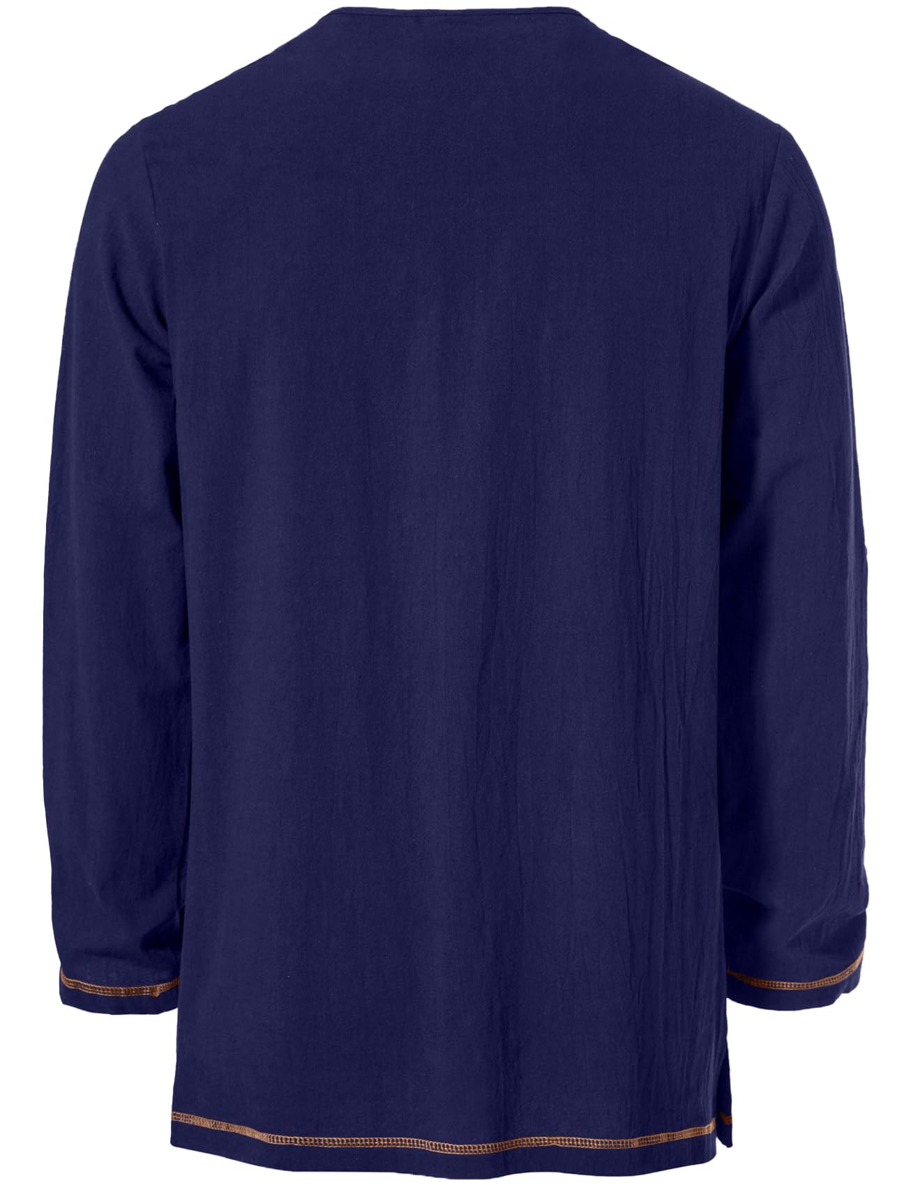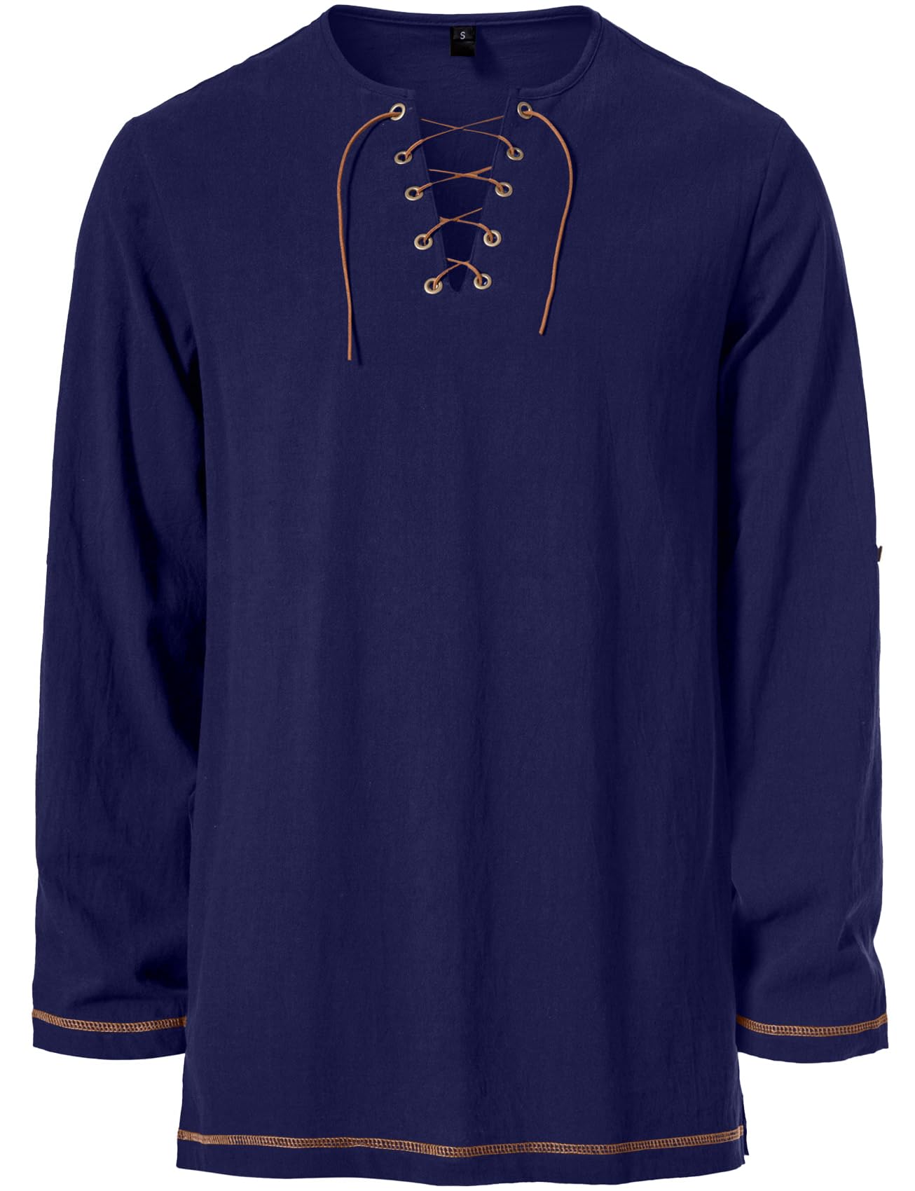 Design Concept: Mid-long tunic top / Contrast color drawstring design / Bronze buttonholes with retro buttons / Regular fit / V neck / Side slit / Long sleeve / Rolled sleeve