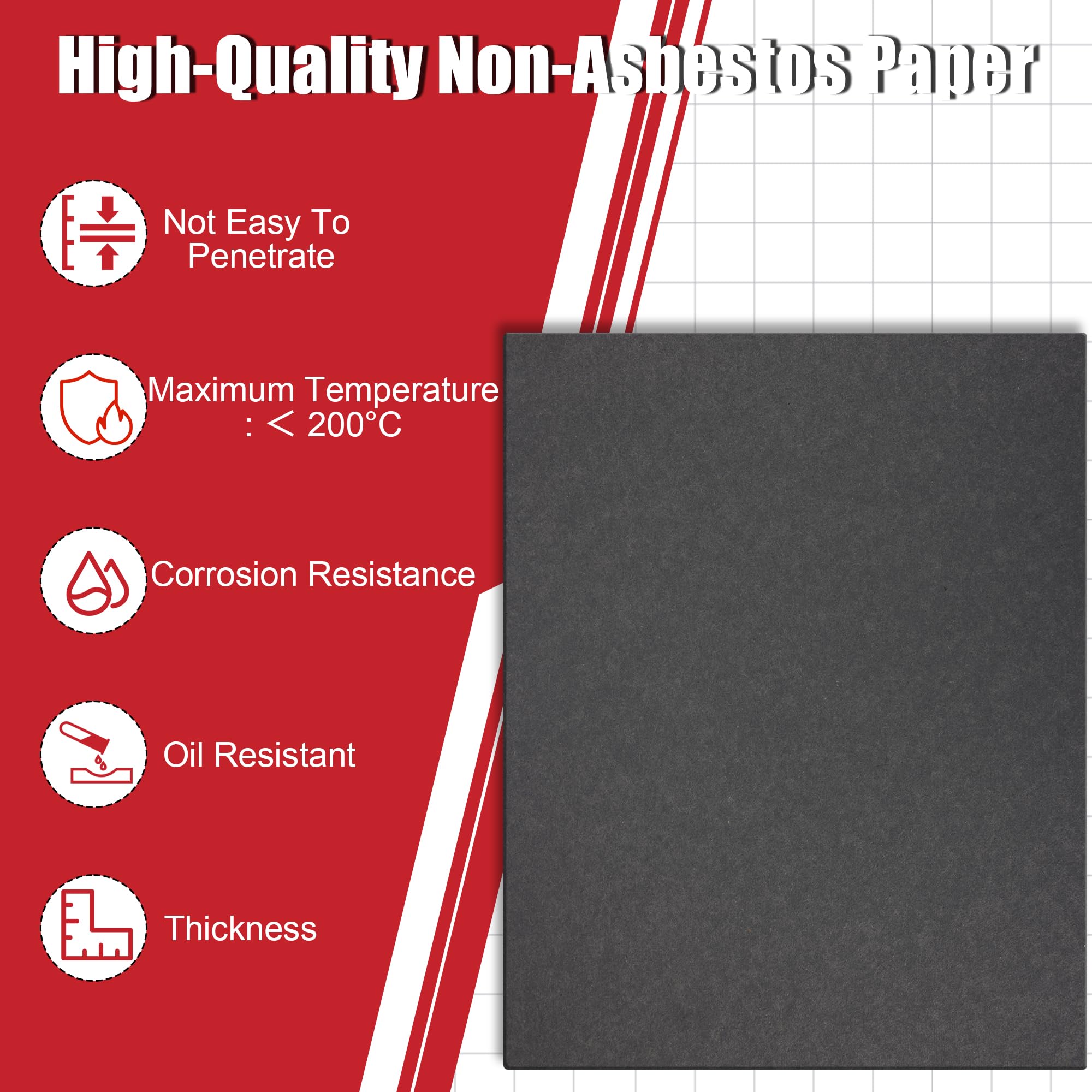 【Gasket Material】: The non-asbestos exhaust gasket material sheet is suitable for small engine gaskets operating at low temperatures, the maximum applicable temperature should not exceed 200°C