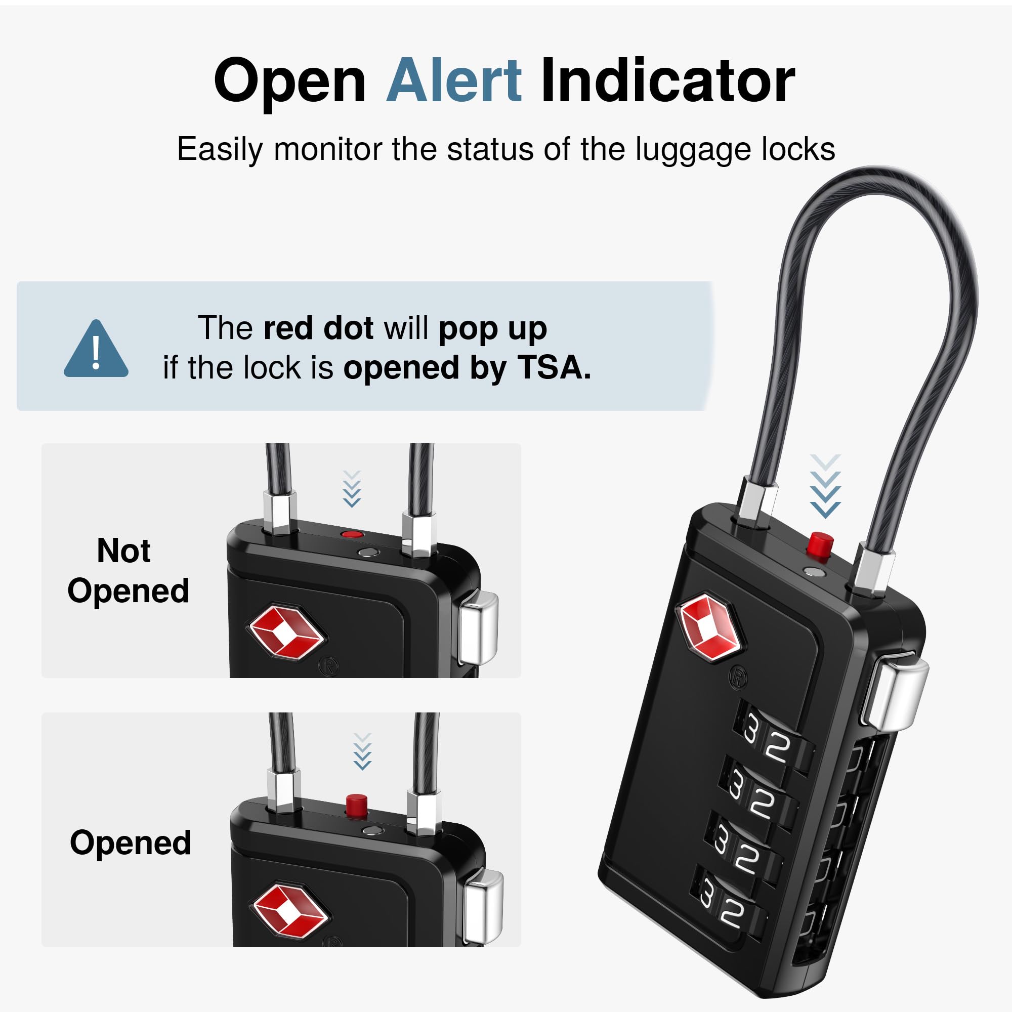 Flexible & Versatile Cable Lock: The durable steel cable is flexible enough to fit through zippers and lock holes easily and strong enough to secure suitcases, backpacks, gym lockers, gun cases and equipment cases. Its adaptability makes this TSA locks for luggage perfect for travel, work, and daily life.