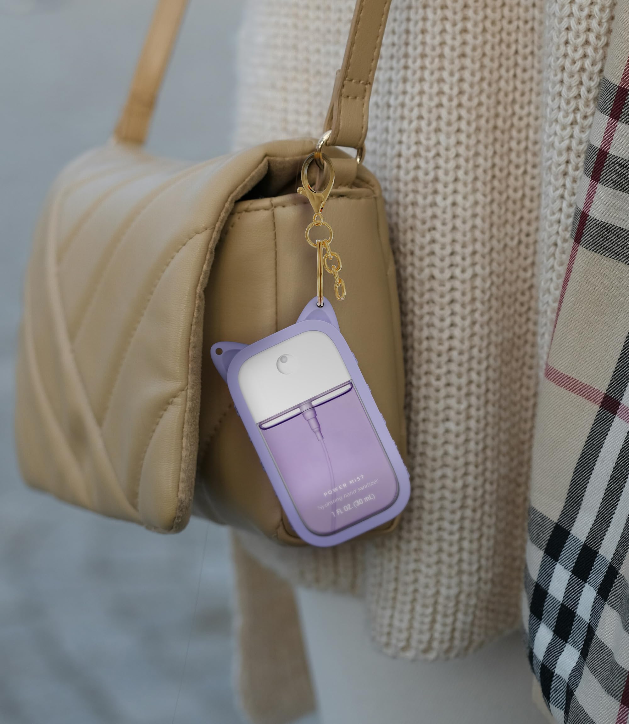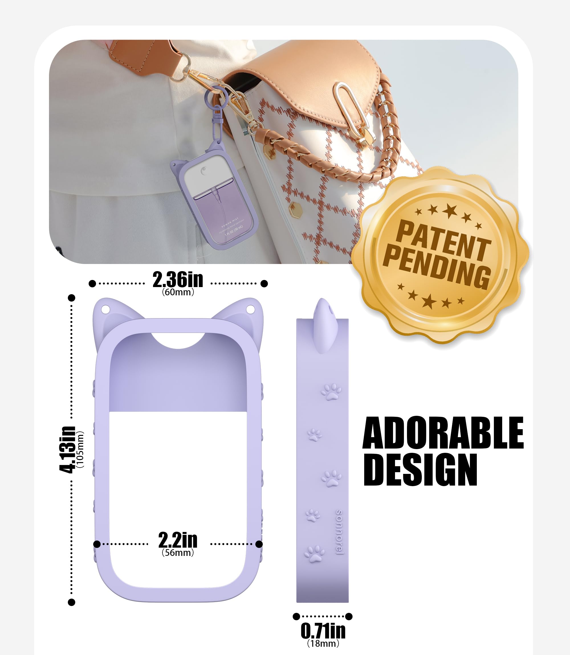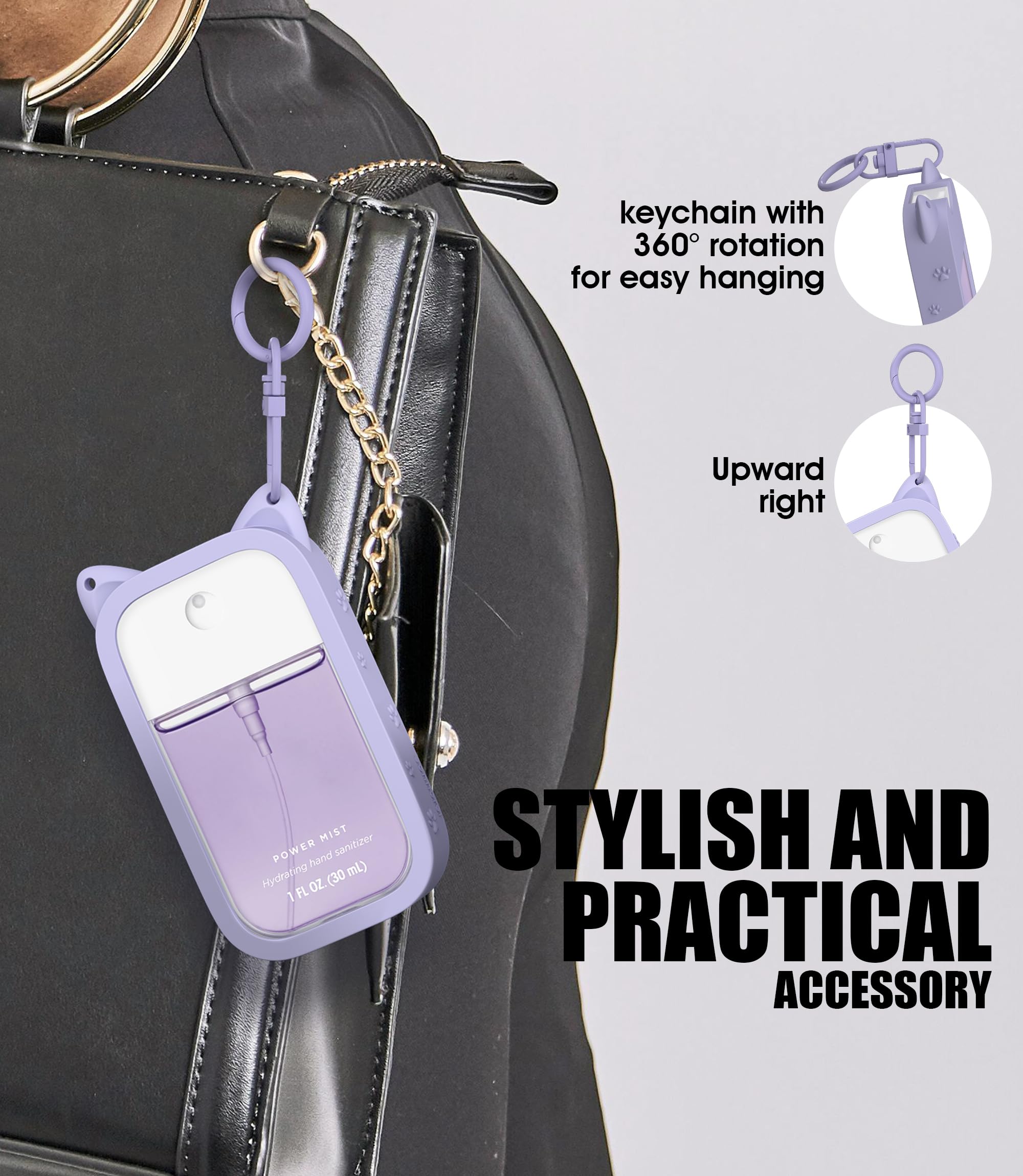 Sonnorel 1 Pack Silicone Case Compatible with Touchland Hand Sanitizer Spray (Fit for 1 FL OZ/30 mL Ver), Portable keychain Cute Color Ears (Purple)
