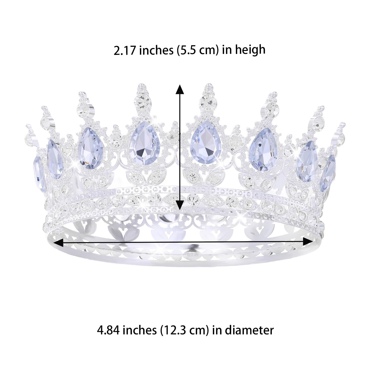 Size and Package: Our tiara crown are suitable for adult women, Diameter about: 4.72 inches, Height about: 2.0 inches, Weight about: 0.234 lb. The package includes four clips to fix the crown on your head and brings you a long and comfortable wearing experience.