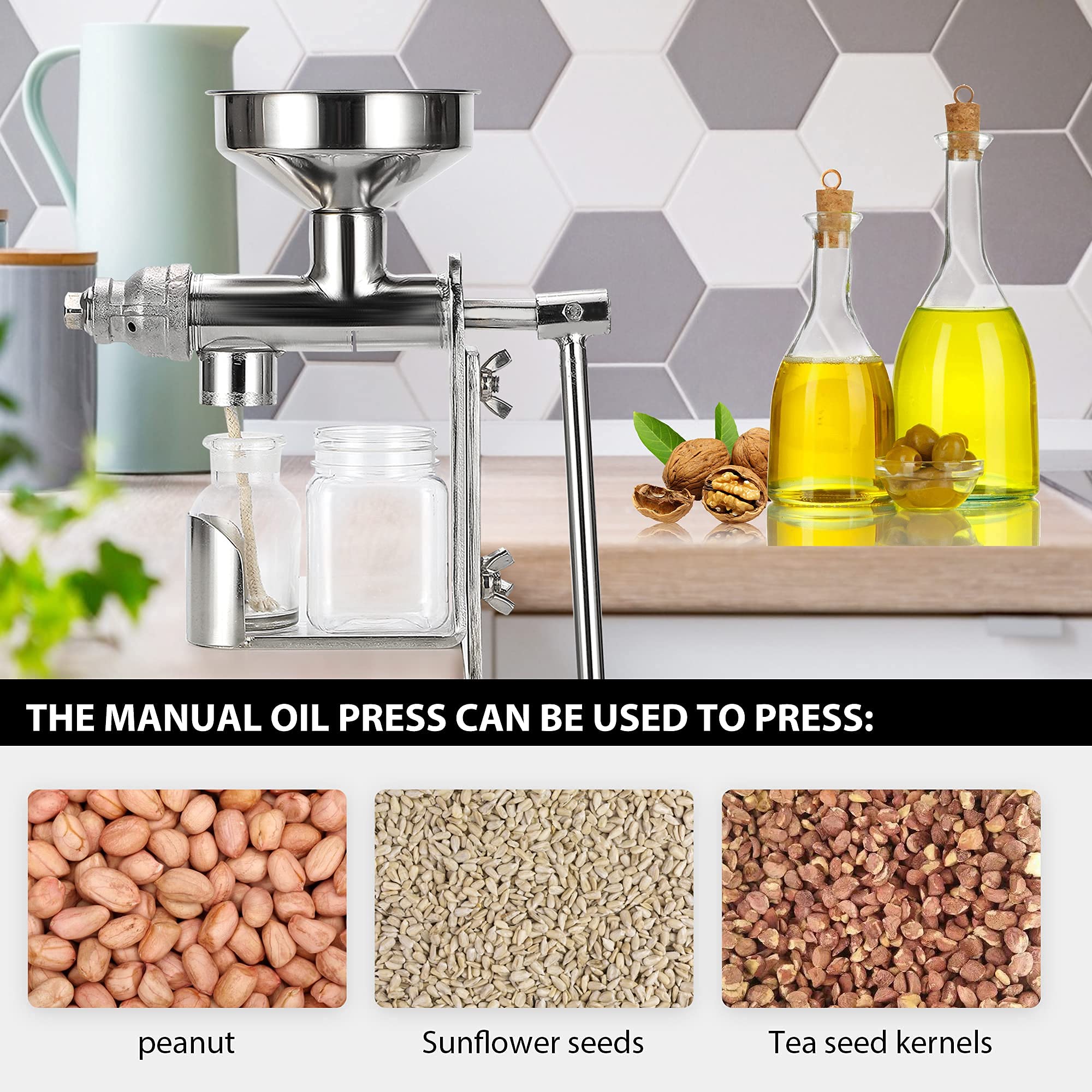 Make your own Healthy Oil - Manually operated.Suitable for most of the oil content is more than 25% of the oil crops, such as peanut, sunflower seed, tea seed, sesame seed, walnut, coconut oil, etc.But Flax seed Rapeseed is too small, and olive is too complicated,we are not recommend to use