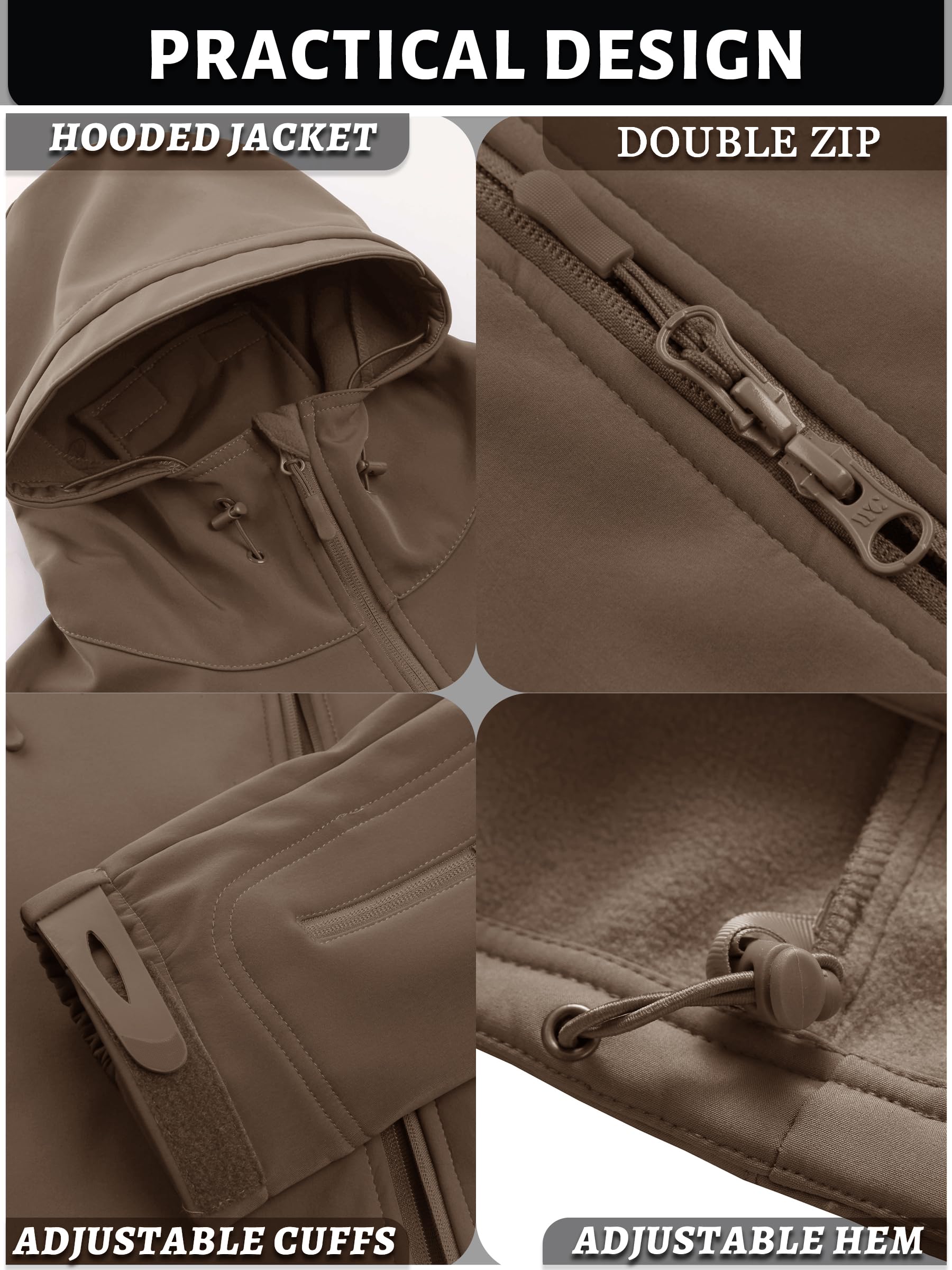 【Waterproof & Windproof】This softshell fleece-lined jacket is treated to repel water while maintaining breathability. And it effectively prevents rainwater from entering your interior fabric, keeping you dry and comfortable.It helps to keep the cold wind out in cold winter weather. As well as preventing cold wind from entering the body to some extent.