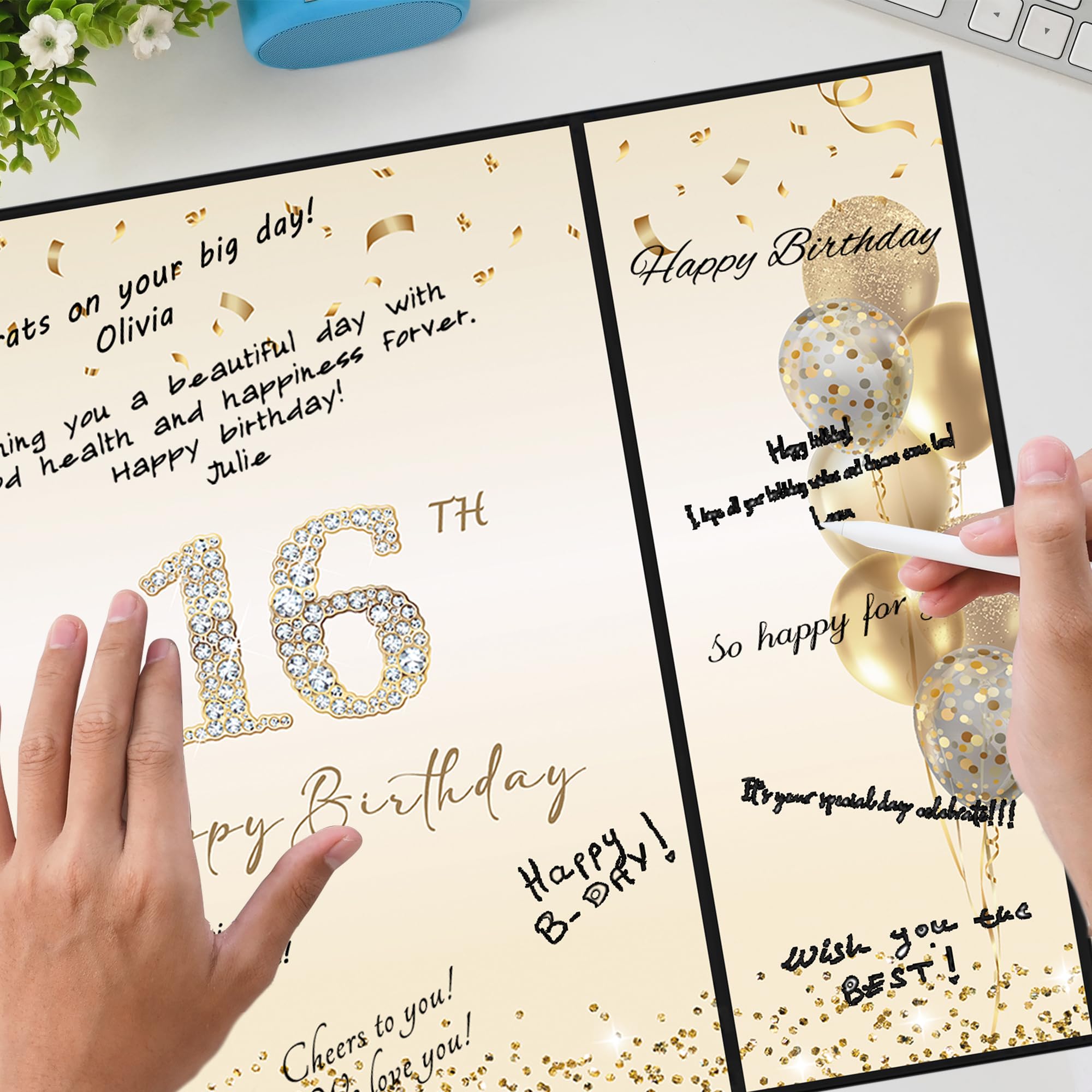 【Package Included】 - You will get a Happy 16th Birthday signature guest book(without pen). It doesn't need to assemble and is a practical tool to sign the names or blessings of the guests at the 16th birthday party. It is durable and suitable for long term storage for you, your friends or family beautiful memories. It will not fade for years, perfect for writing, durable, suitable for long term storage. You can look back over time at your amazing creation.