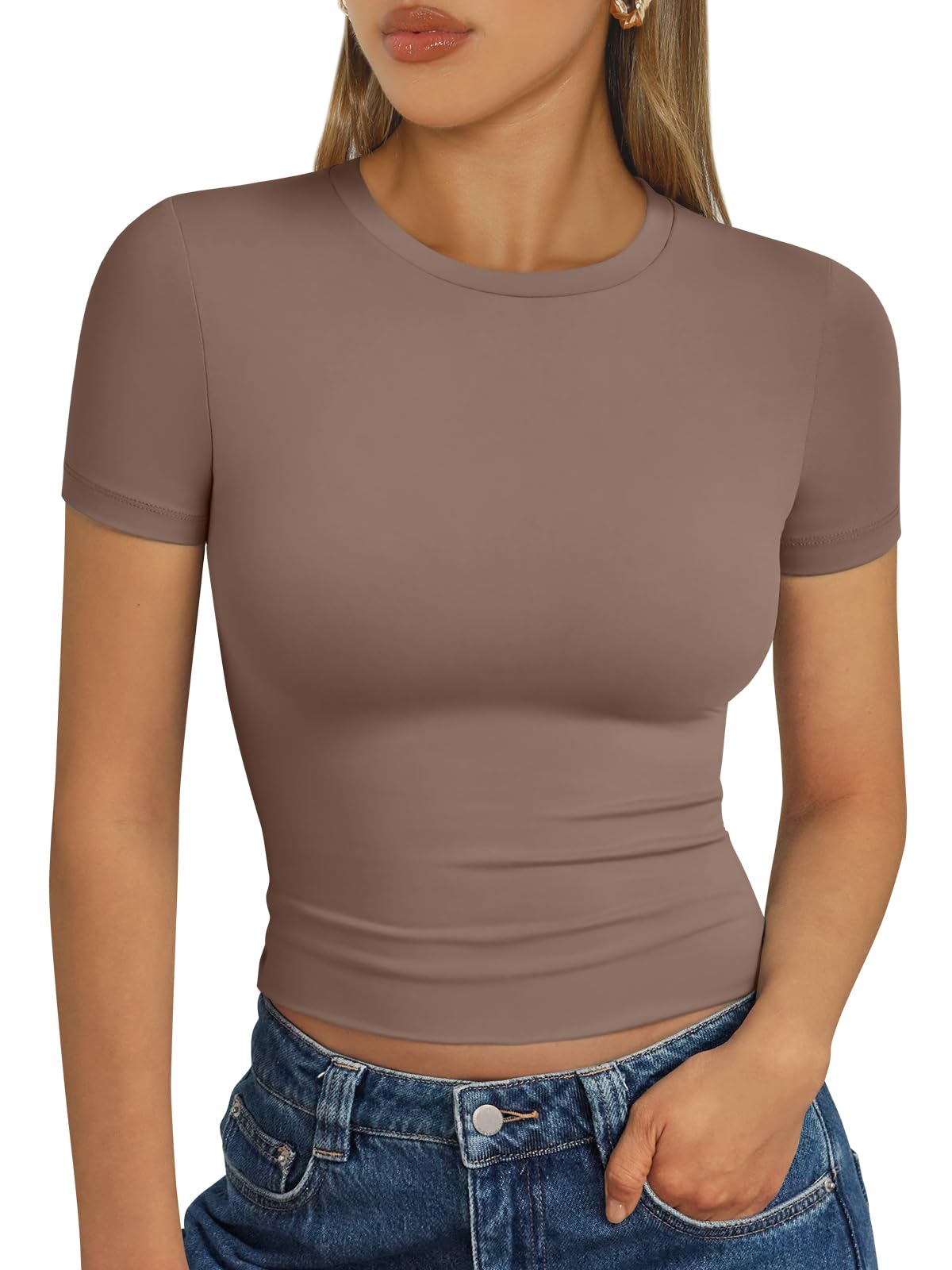 Design: Cropped and regular style,you can wear it regularly or fold it up like a crop top.cute,slim fitted,casual style,scoop neck,short sleeve